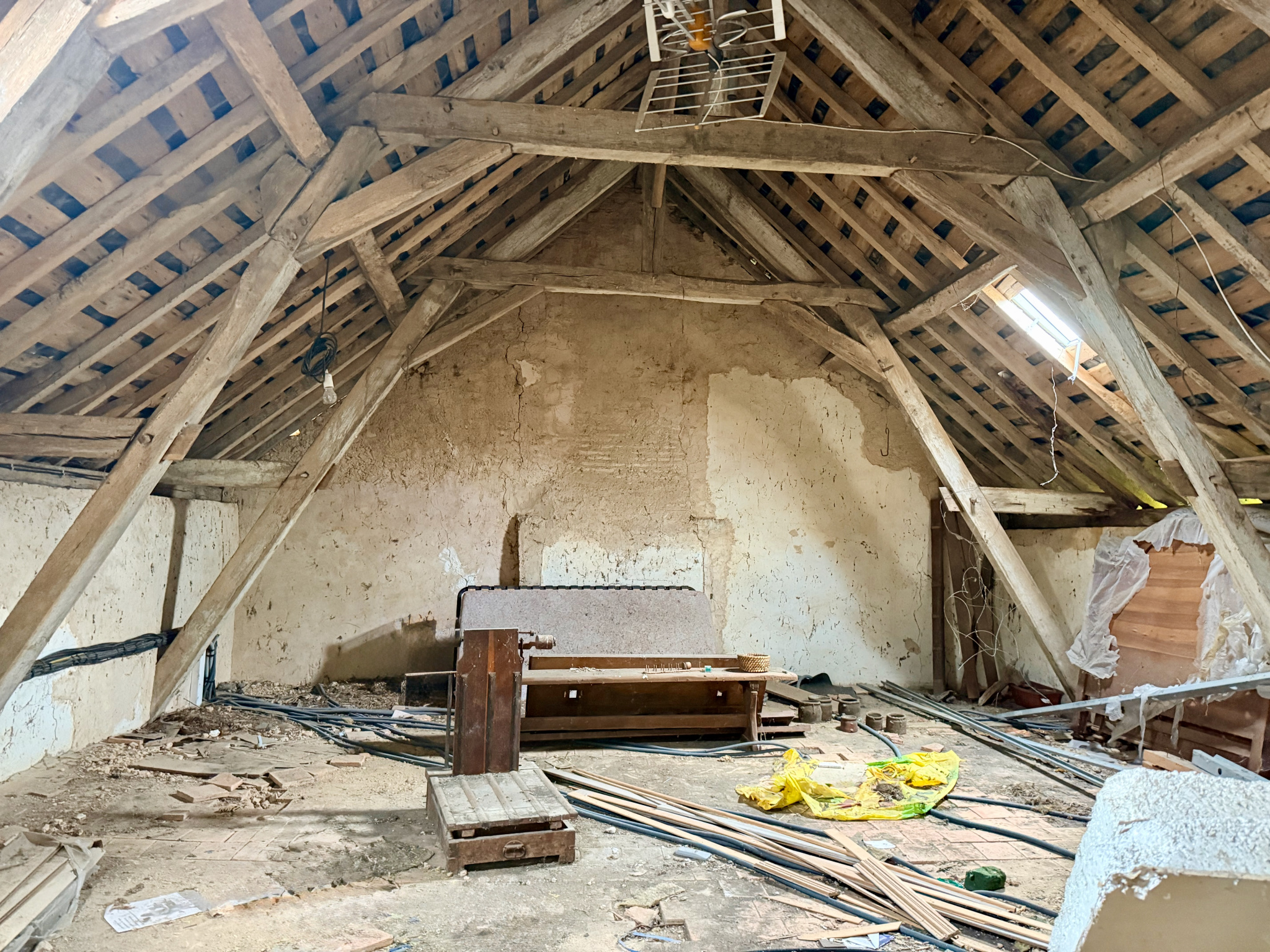 A l'étage, un palier dessert 3 chambres et un vaste grenier de plus de 30 m2 à finir d'aménager (réserves eau et electricité effectuées).