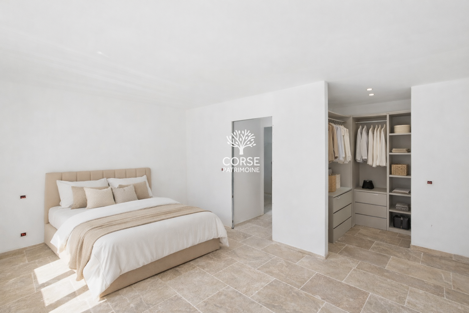 Côté nuit, la villa propose trois chambres, dont une suite parentale avec salle d'eau, WC et dressing, une seconde salle d'eau équipée d'une double vasque et d'une douche à l'italienne, et un WC indépendant.