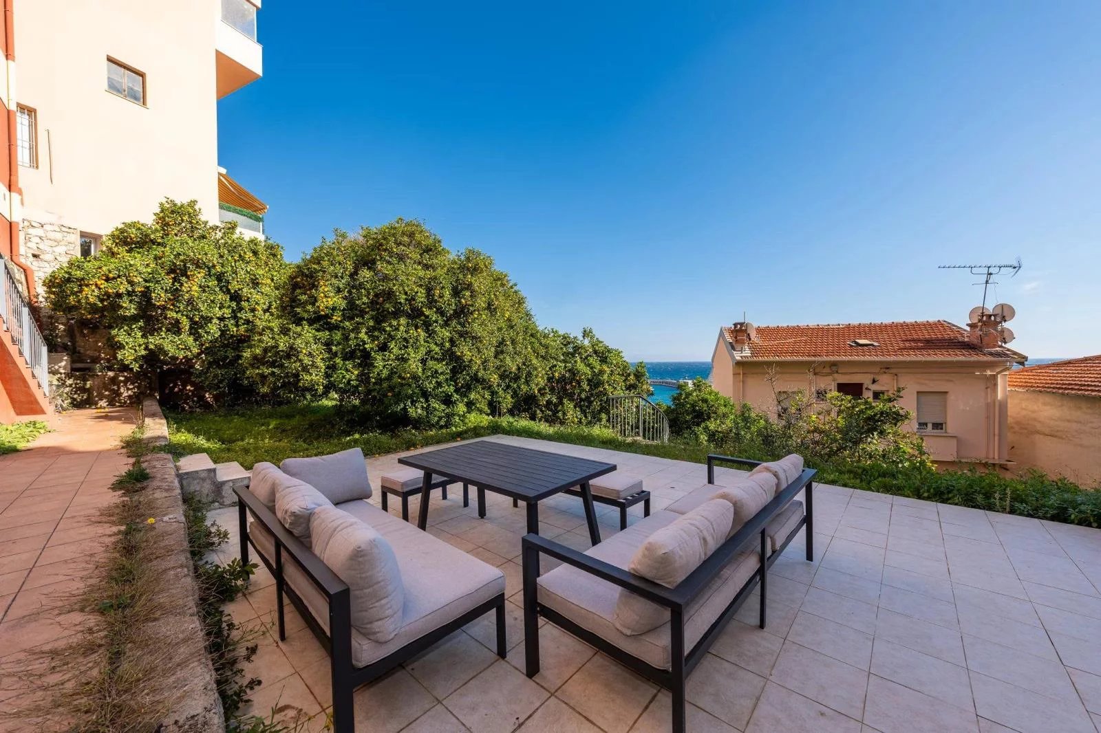 D’une superficie de 75,55 m², l’appartement a été refait intégralement avec des prestations de qualité. Il s’ouvre sur un magnifique jardin privatif de 450m2 arboré, bénéficiant d’une situation cadastrale unique, le plus proche de Monaco dans ce secteur. Possibilité d’aménagement futur avec bassin (2x4m) et dépendance type pool house ou espace invité à rénové.