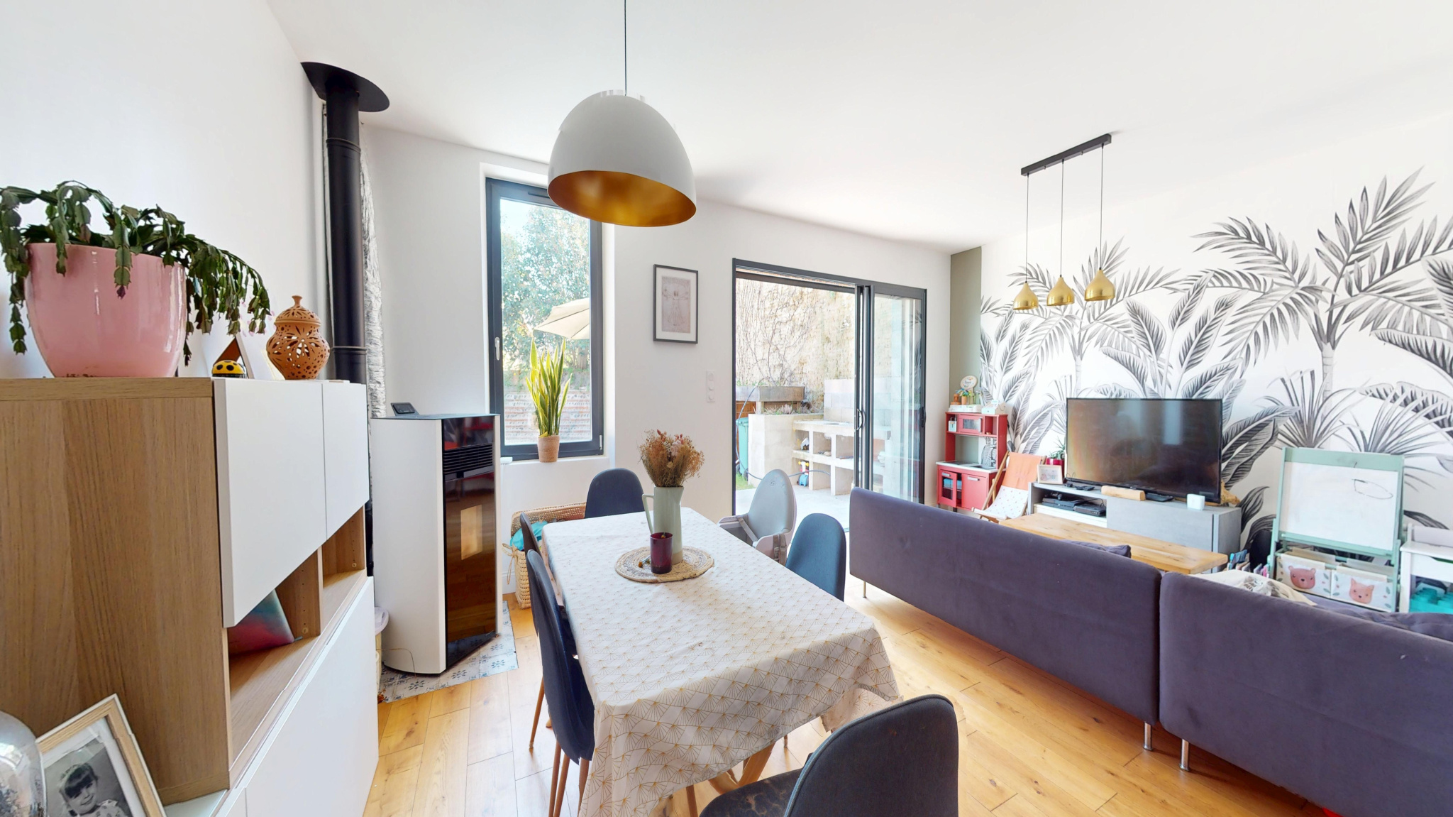 A 2 pas de tous les commerces, cette jolie maison ancienne complètement rénovée a vraiment tout pour vous séduire, séjour avec poêle à granules, belle cuisine équipée et aménagée, 4 belles chambres, dont une suite parentale et un jardin à l'abri des regards!