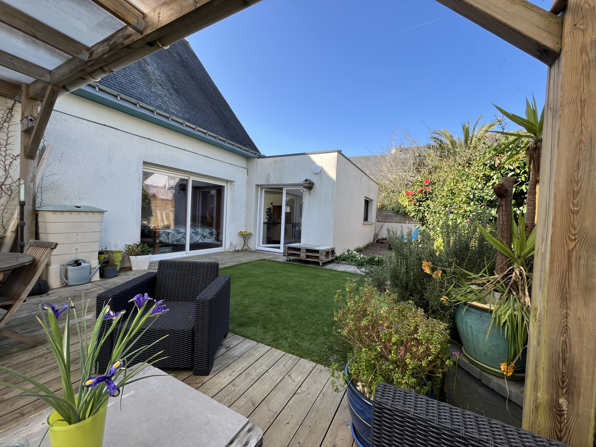 Idéalement située à proximité immédiate du bourg de Guidel, cette maison des années 60 rénovée offre un cadre de vie agréable, alliant charme de l'ancien et confort actuel.