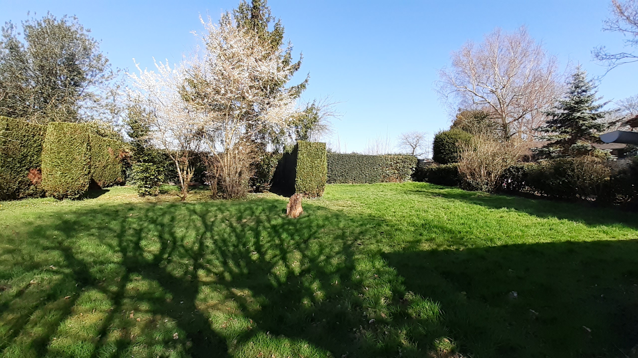 Il dispose d'une terrasse exposée sud et est édifié sur un terrain de 1040 m2 sans vis à vis et entièrement paysagé, sur lequel deux garages et une charreterie ont été construits.