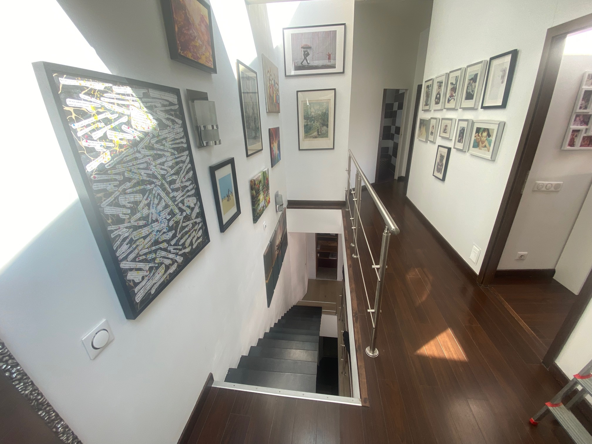 A l'étage un dégagement lumineux distribue trois chambres, dont une avec salle d'eau et wc privatifs,ainsi qu'une salle d'eau indépendante avec wc.