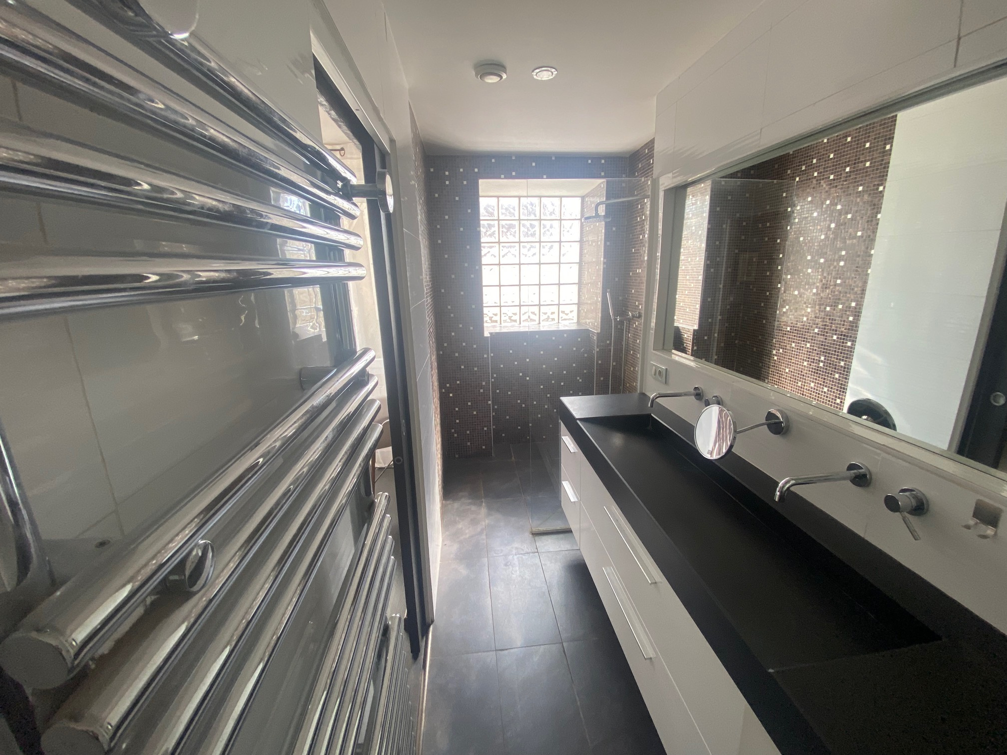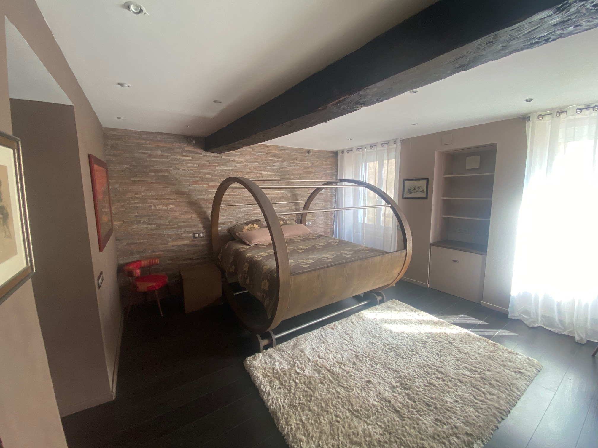 Les menuiseries sont en aluminium double vitrage avec volets roulants électriques le chauffage est une pompe à chaleur.