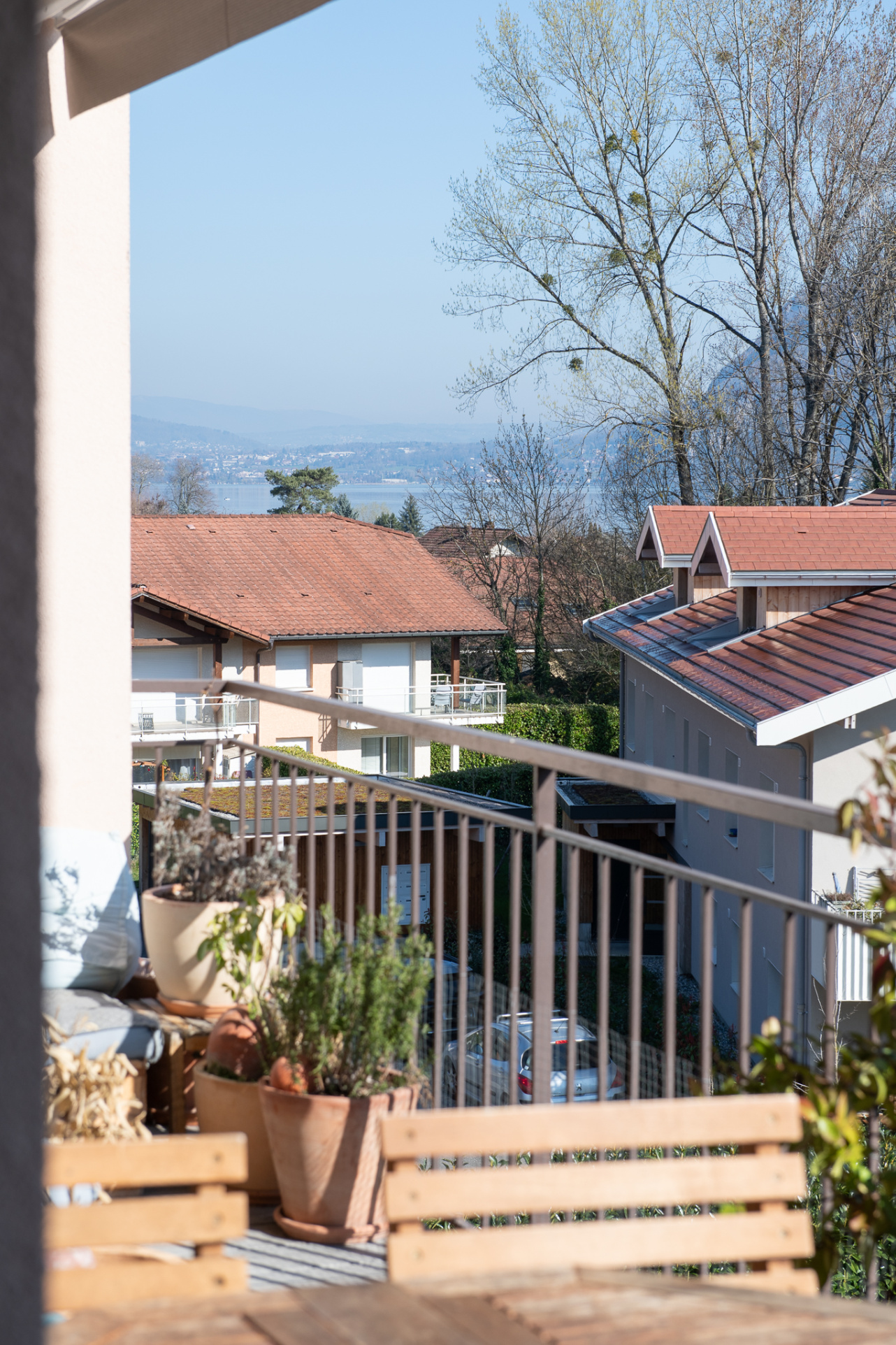 Les atouts : o Vue dégagée sur le lac et les montagnes o Grand balcon de 12 m2 o Véranda supplémentaire o 3 chambres o Cave et stationnement o Grand jardin de copropriété