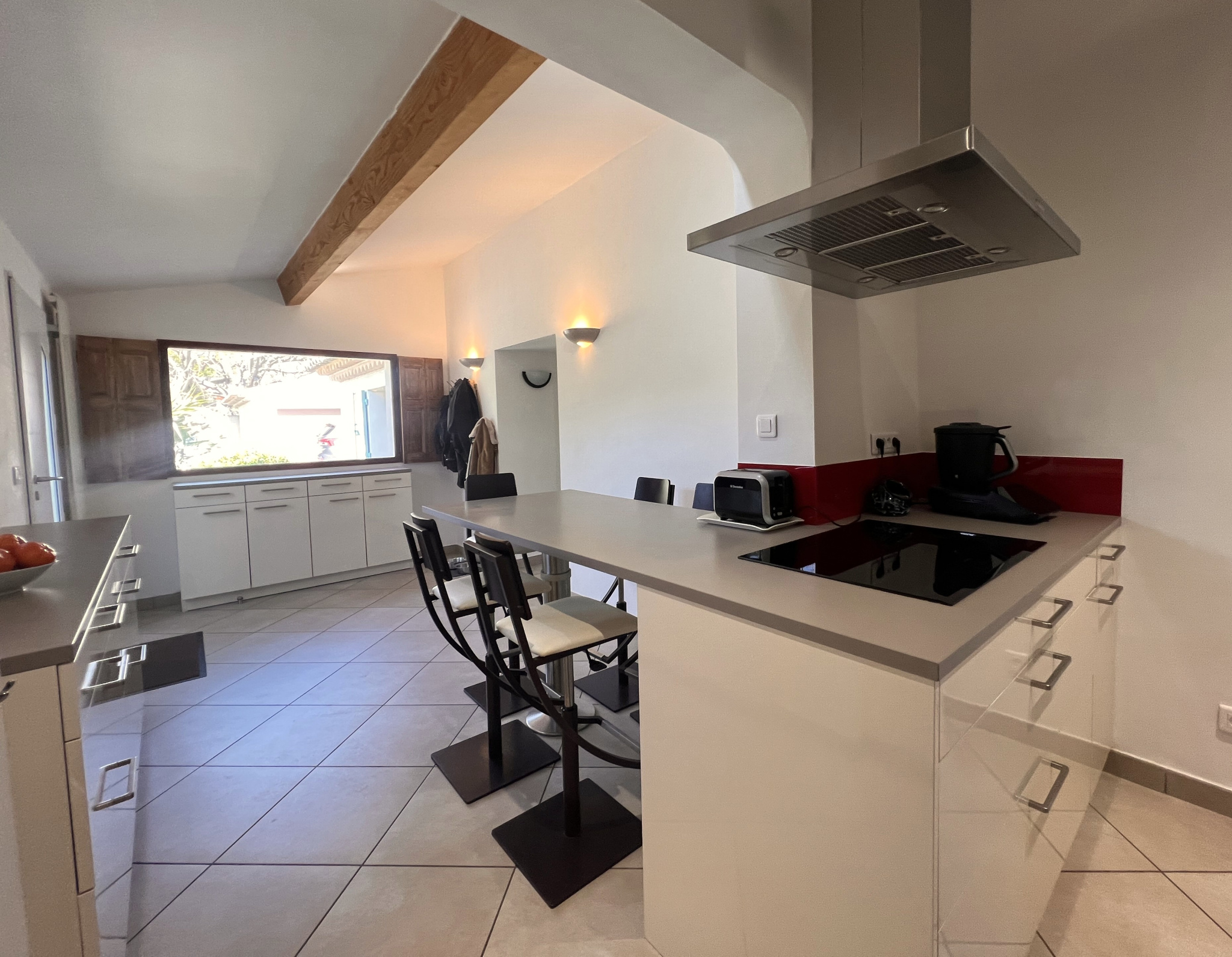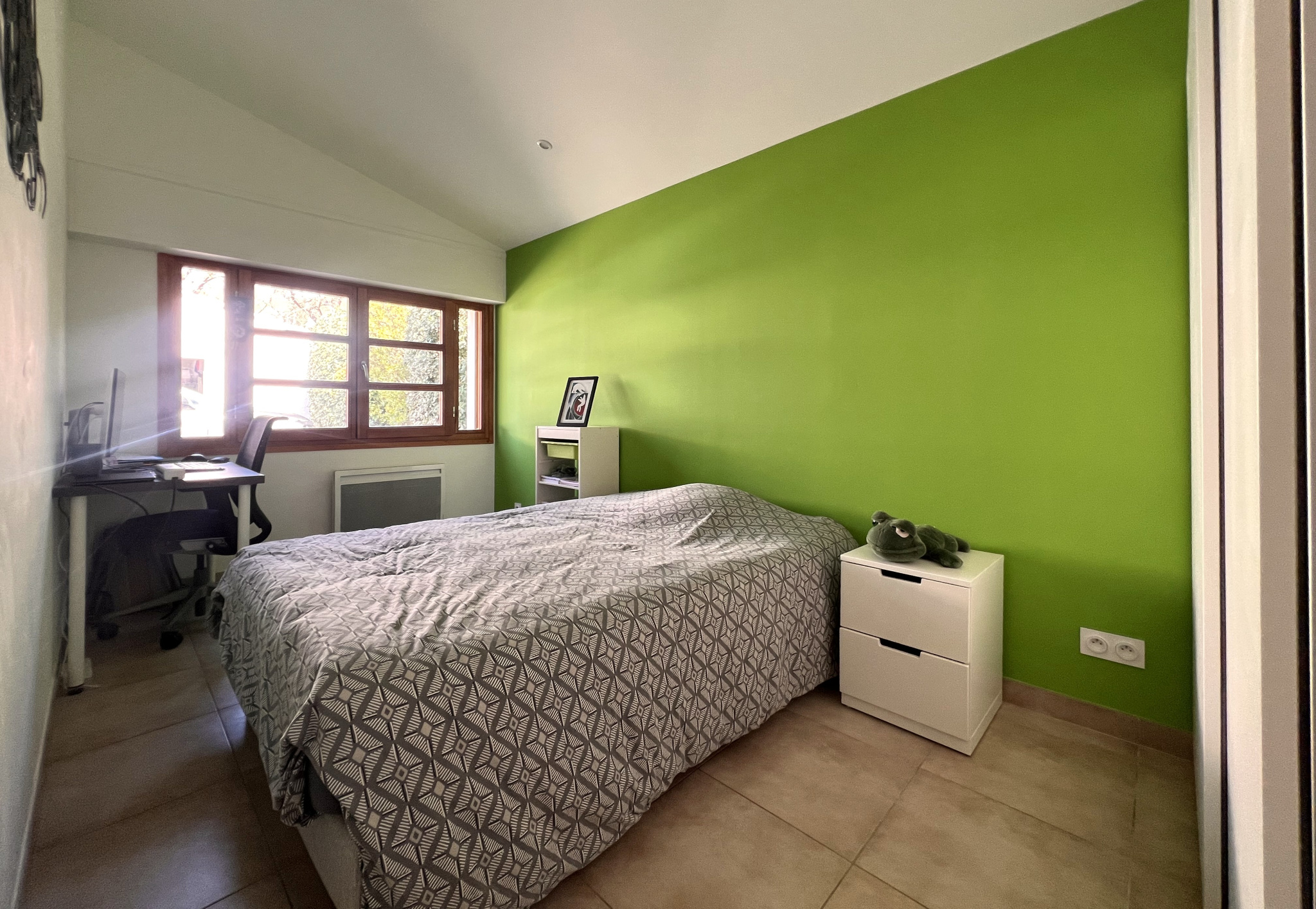 La maison bénéficie de nombreuses ouvertures qui laisse entrer la lumiere de part et d'autres et la distribution des pièces permet une rare intimité. Elle est équipée d'une pompe à chaleur, de double vitrage bois et de volet bois.