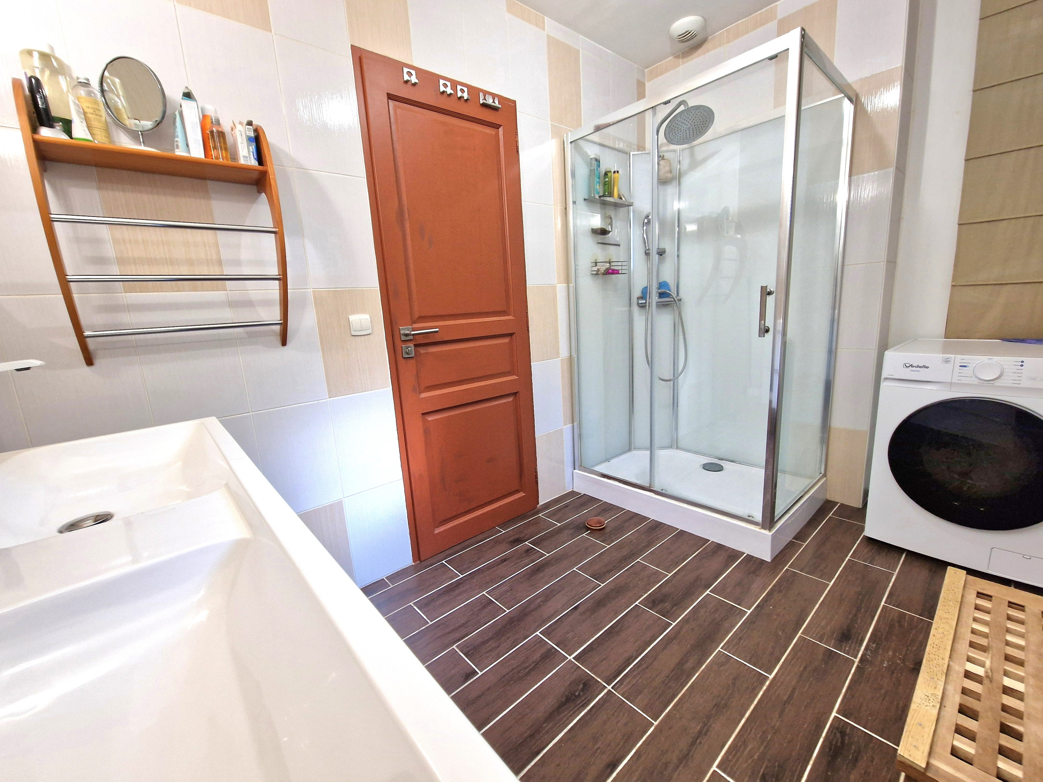 Elle se compose d'une entrée ouvrant sur une belle pièce de vie lumineuse avec séjour et cuisine ouverte d'environ 45 m2. L'espace nuit comprend trois chambres avec une quatrième possible selon vos besoins. Vous trouverez également une salle d'eau équipée d'une double vasque et douche, ainsi que des WC séparés.