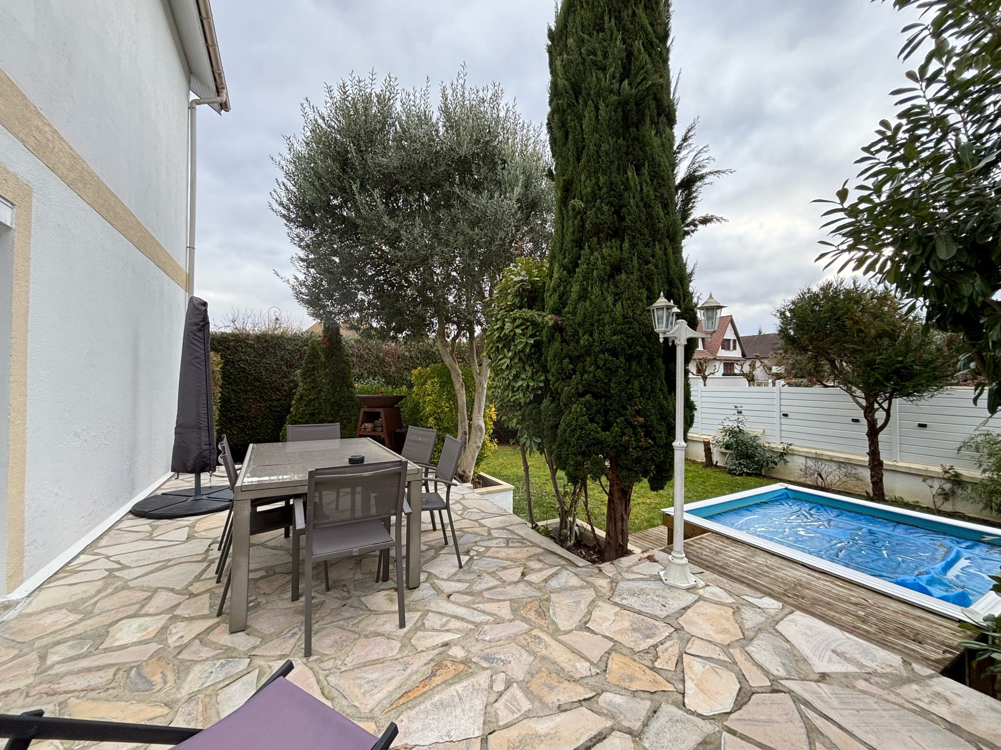 À l'extérieur, vous bénéficierez d'un carport permettant de stationner plusieurs véhicules, ainsi que d'un joli jardin sans vis-à-vis, parfaitement exposé, avec une petite piscine pour profiter des beaux jours.