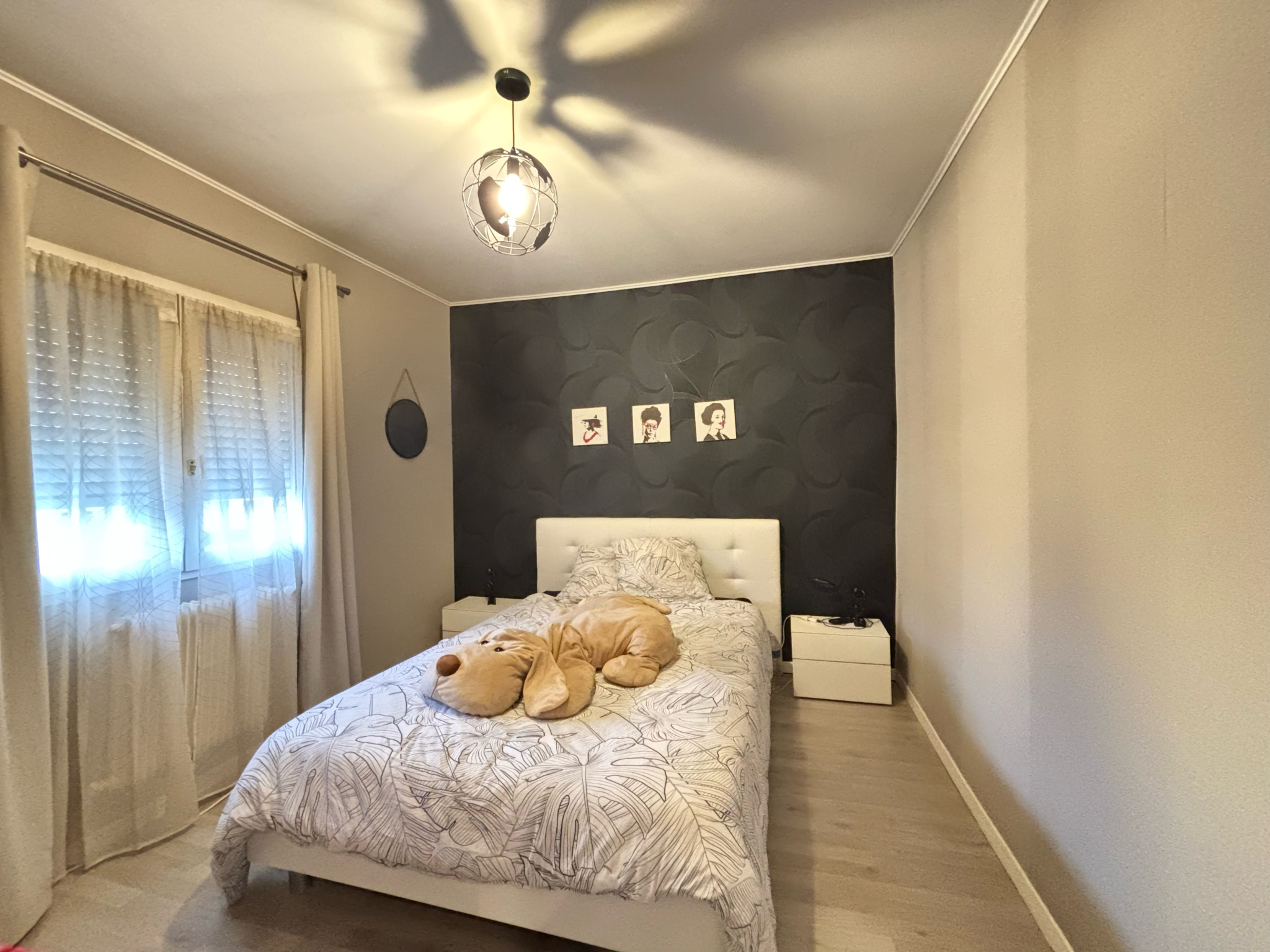 À l'étage, un palier dessert trois chambres avec placards intégrés, ainsi qu'une salle d'eau moderne avec WC.