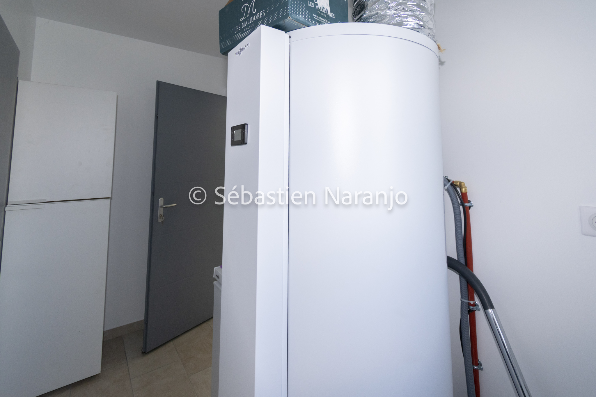 La maison dispose de prestations modernes avec panneaux photovoltaïques pour l'autoconsommation, pompe à chaleur air/air, chauffe-eau thermodynamique, volets roulants électriques et accès à la fibre. Elle bénéficie d'un excellent classement énergétique DPE A et respecte la norme RT 2020.