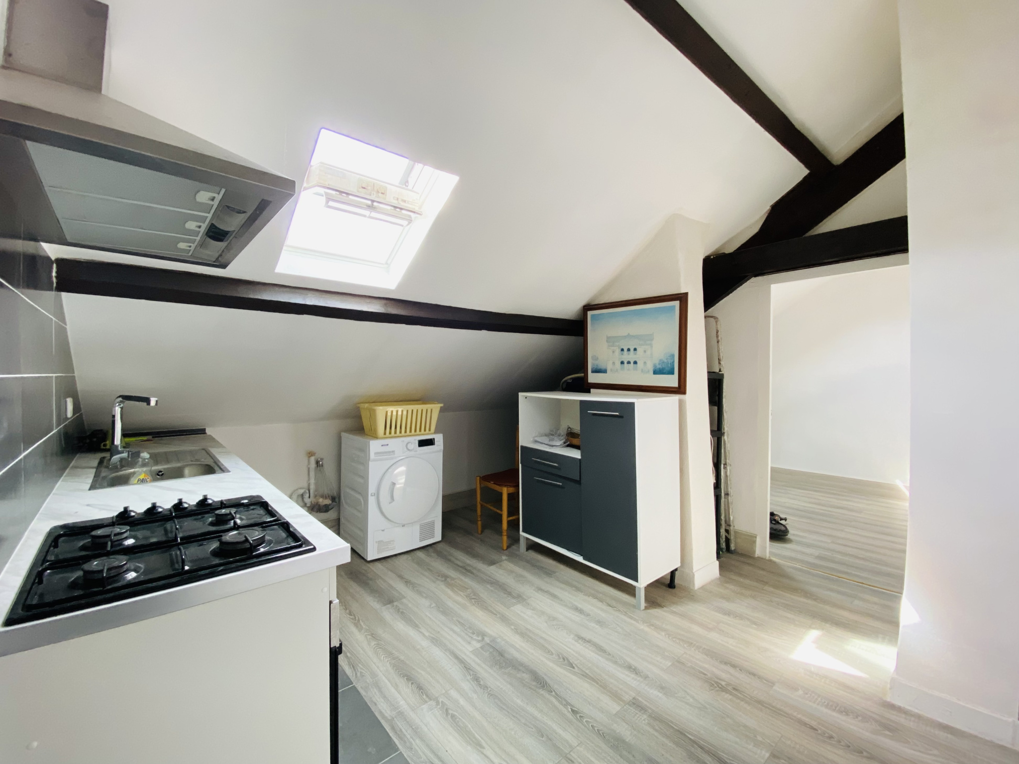 Au deuxième étage, un studio indépendant d'environ 23 m2 se compose d'un espace cuisine ouvert sur le salon, d'une chambre ainsi que d'une salle d'eau avec WC.