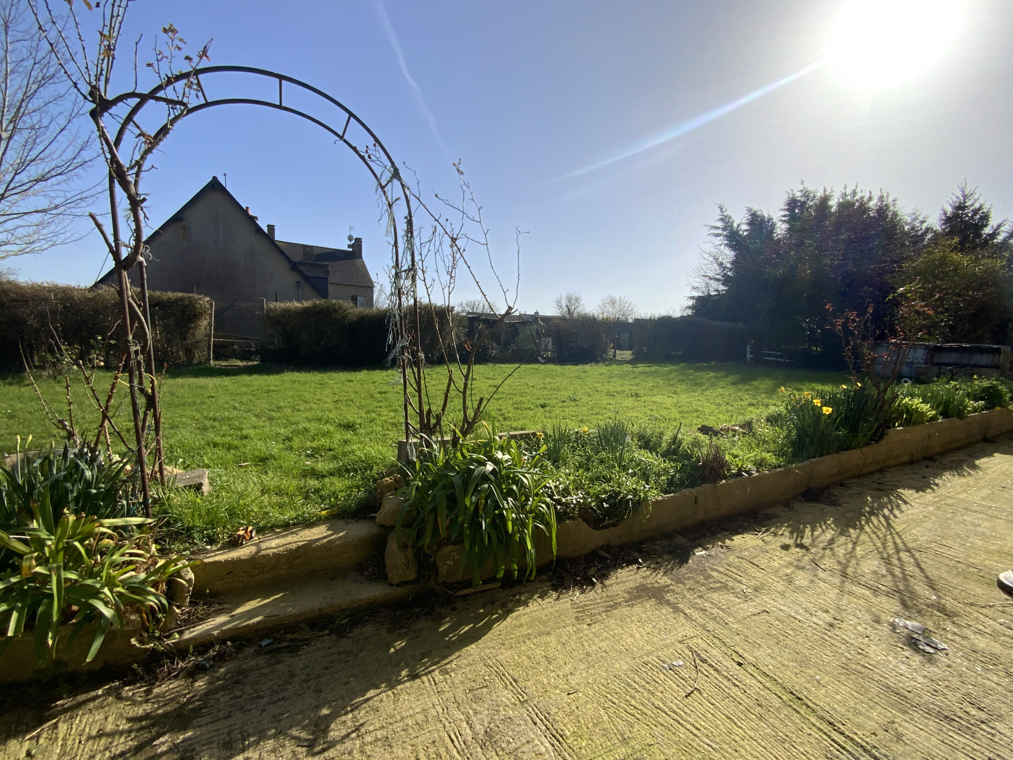 Une cour coté Nord/Est pour parking et un jardin à amenager coté Sud/Ouest.