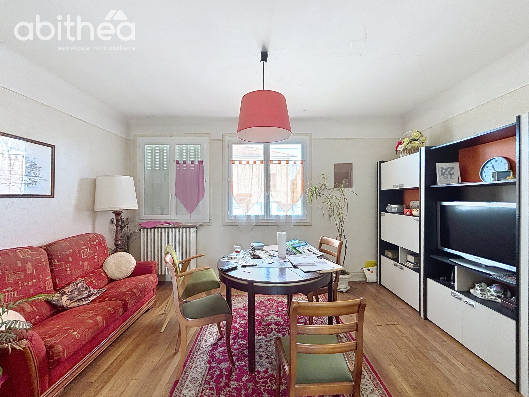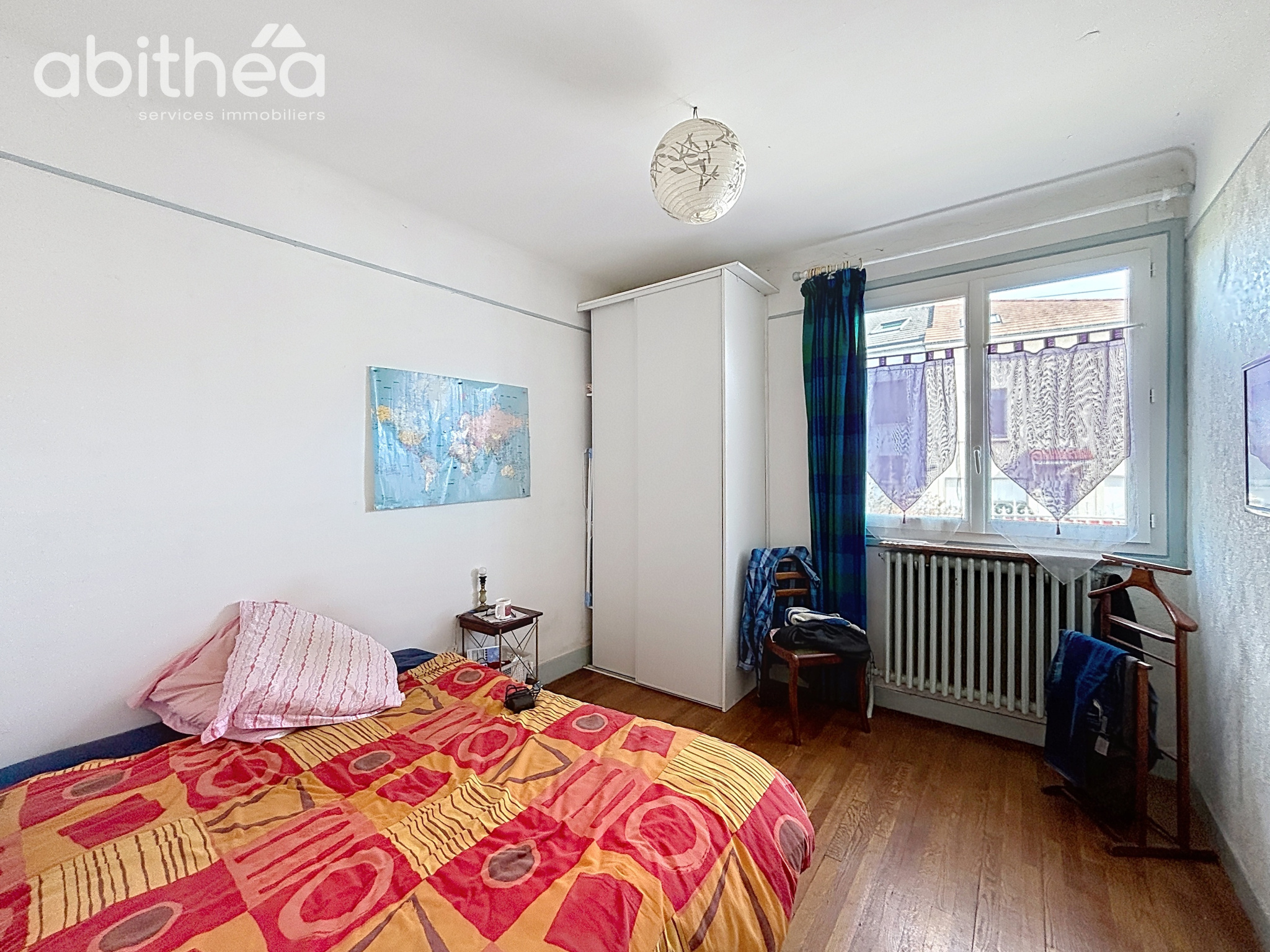 D'une surface d'environ 90 m2 au total, elle se compose de deux chambres, d'une salle de bain, d'une cuisine et d'un séjour de 15 m2, proposant un espace de vie agréable et lumineux.