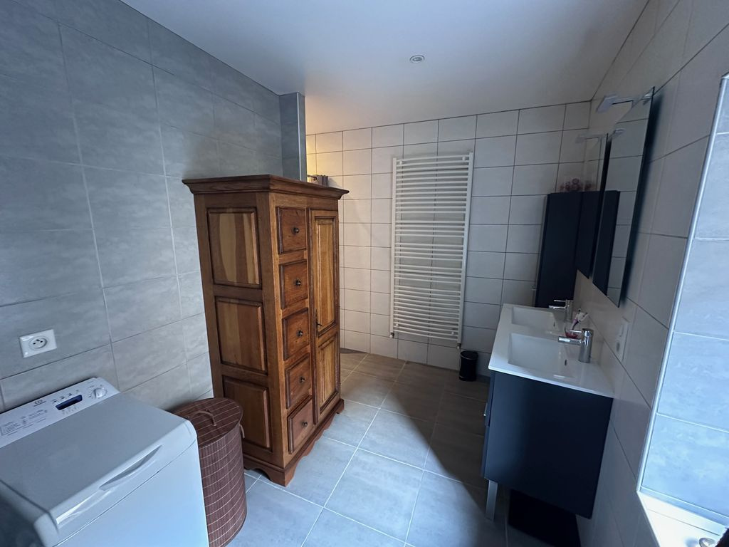 - Salle d'eau (7,20m2) : sol carrelage, meuble double vasques, douche, branchement machine à laver, sèche-serviette fenêtre ;