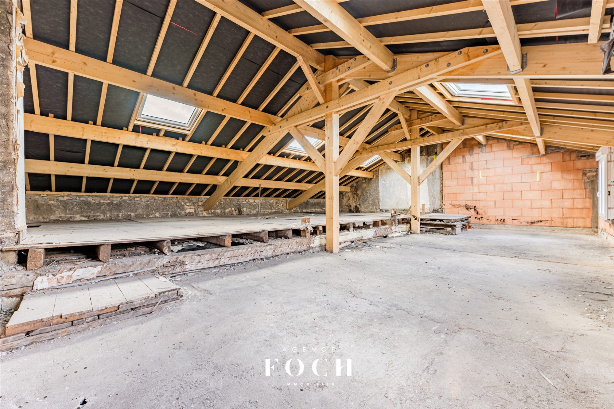 À l'étage, un vaste plateau brut de 97 m² Carrez, véritable page blanche prête à accueillir votre projet. Vous pouvez imaginer un bel espace de vie avec cuisine ouverte, 2 à 3 chambres supplémentaires, une seconde salle d'eau avec WC, ainsi qu'un espace bureau.