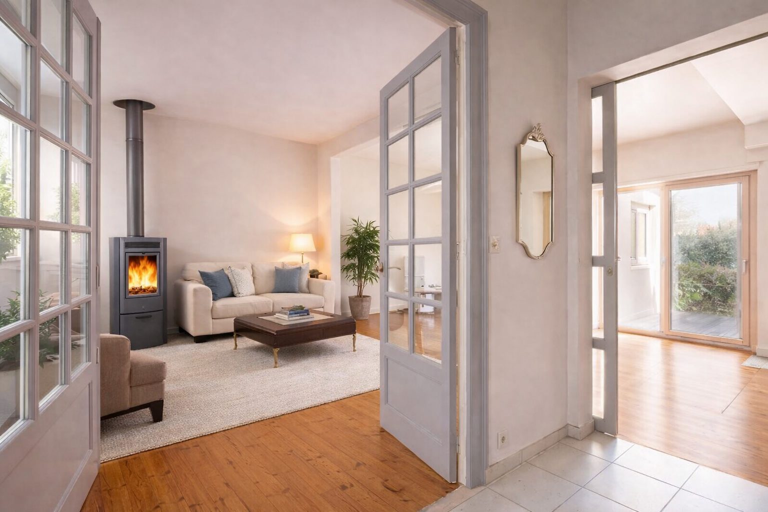 Parfaitement adaptée à une vie de famille, la maison propose trois grandes chambres, un bureau, ainsi qu'un véritable étage parental d'environ 40 m², apportant confort et intimité.