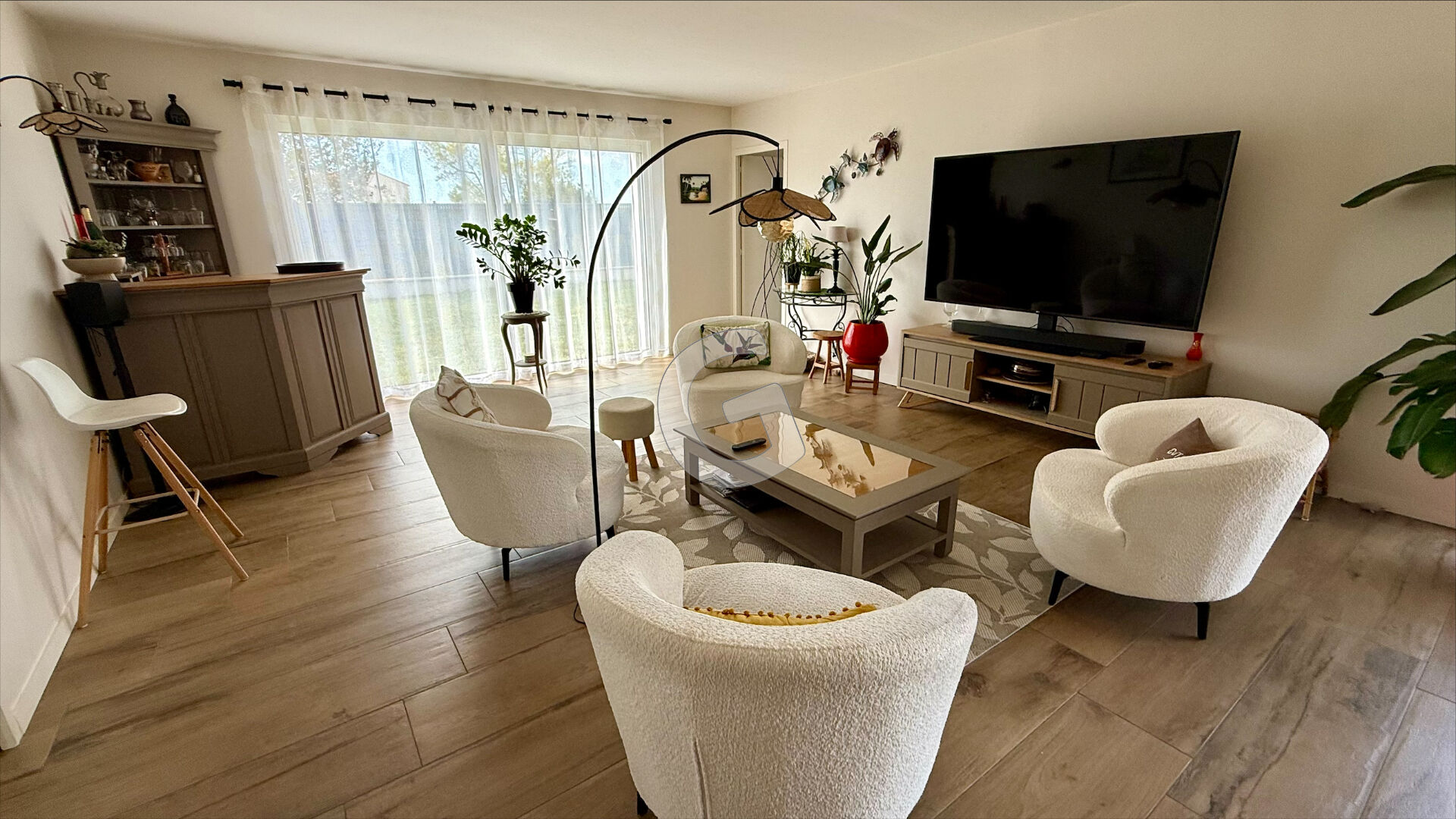 - Un séjour / salon spacieux avec de grandes baies à galandage donnant sur la terrasse