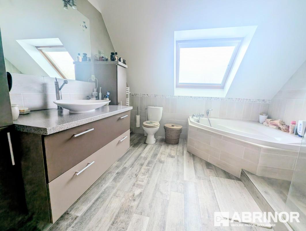 A l'étage 4 chambres, une salle de bain complète avec baignoire, douche à l'italienne et WC.