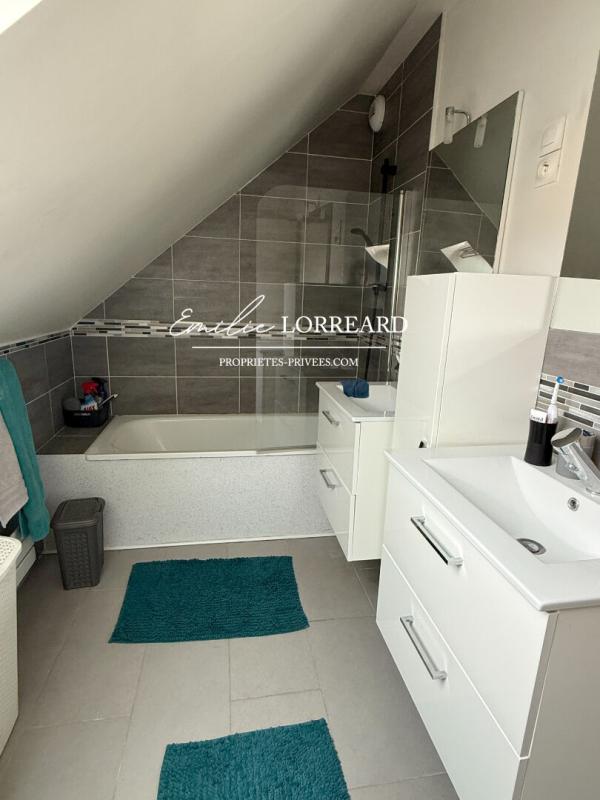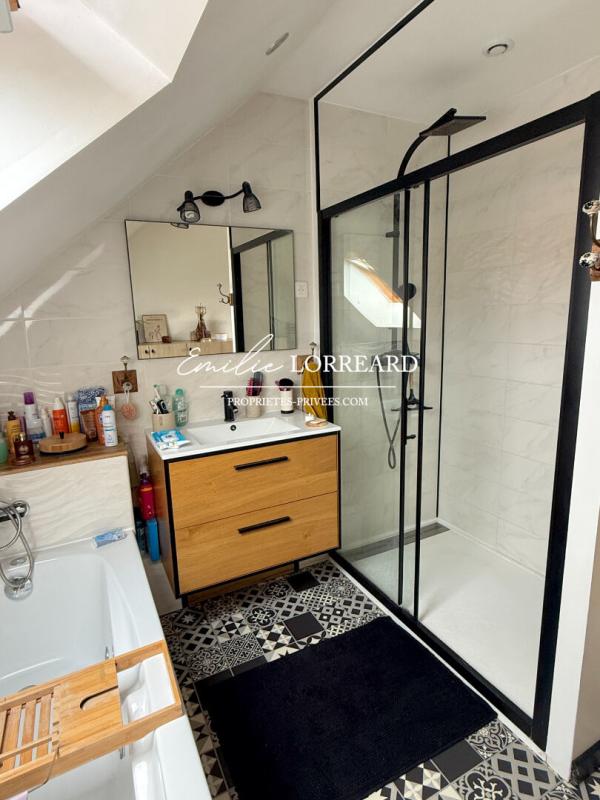 A l'étage : 3 chambres dont une suite parentale avec salle de bain (baignoire et douche), 1 bureau (pouvant être utilisé en petite chambre, salle de jeu ou autres), salle de bain et wc.