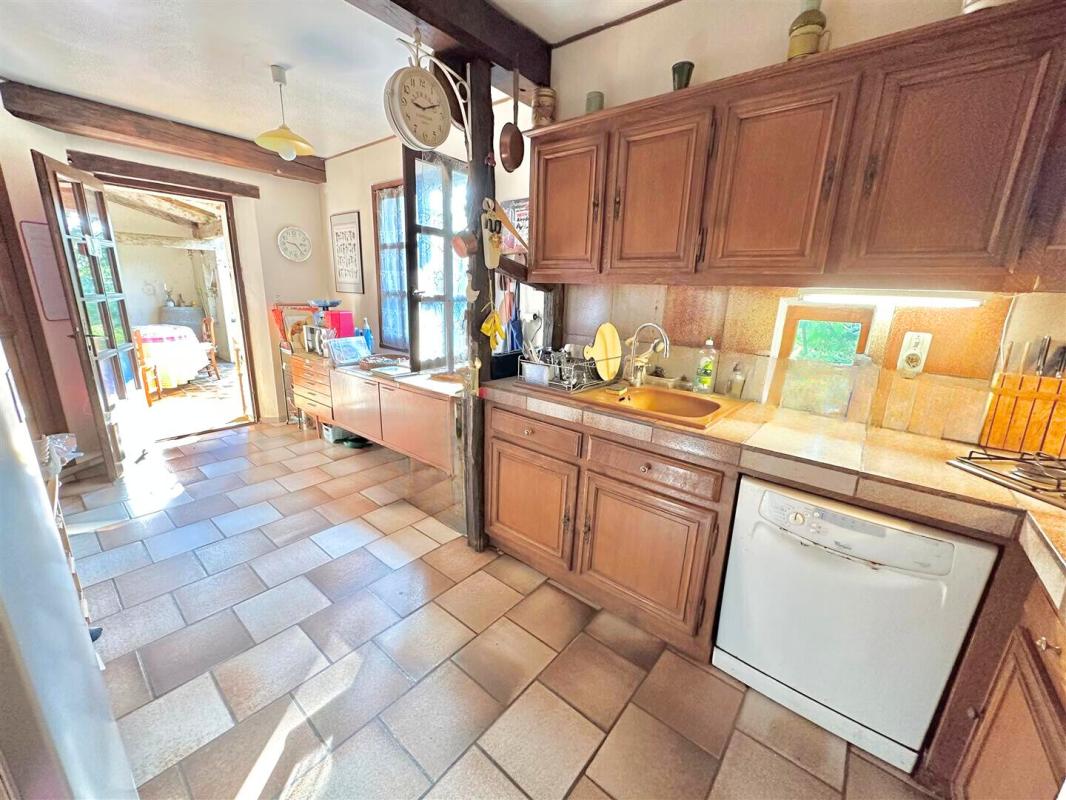 Cette maison vous séduira par son cachet : pierres apparentes, poutres, cheminée, belle hauteur sous plafond et jardin arboré avec piscine de 7,4 x 4,4 m.