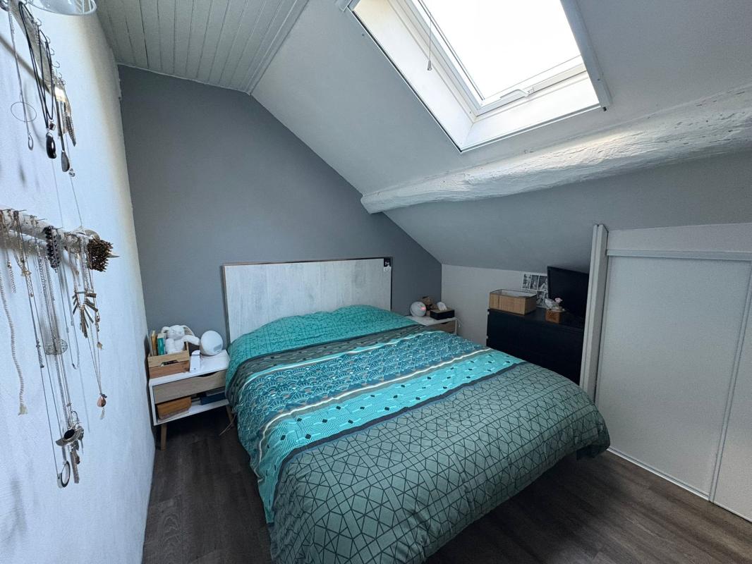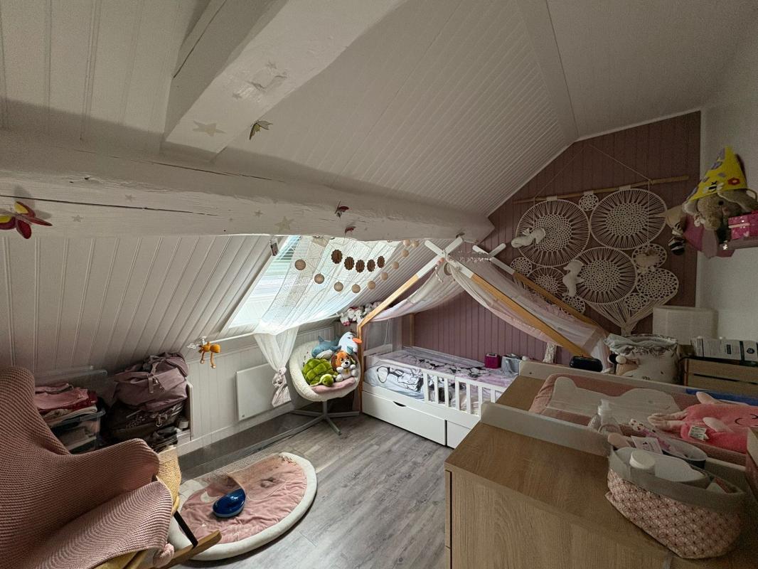 A l'étage : palier, 2 chambres 12,3m² et 13,3m², salle de bains avec wc.