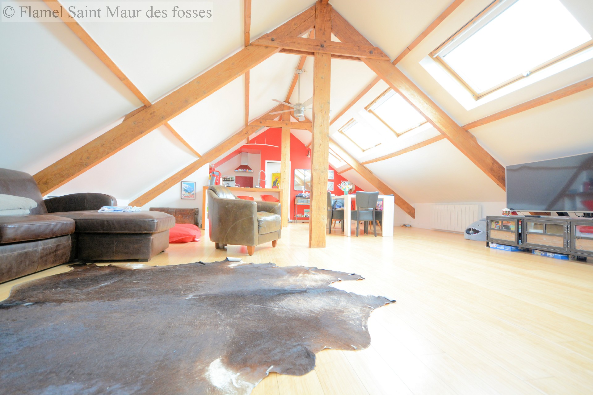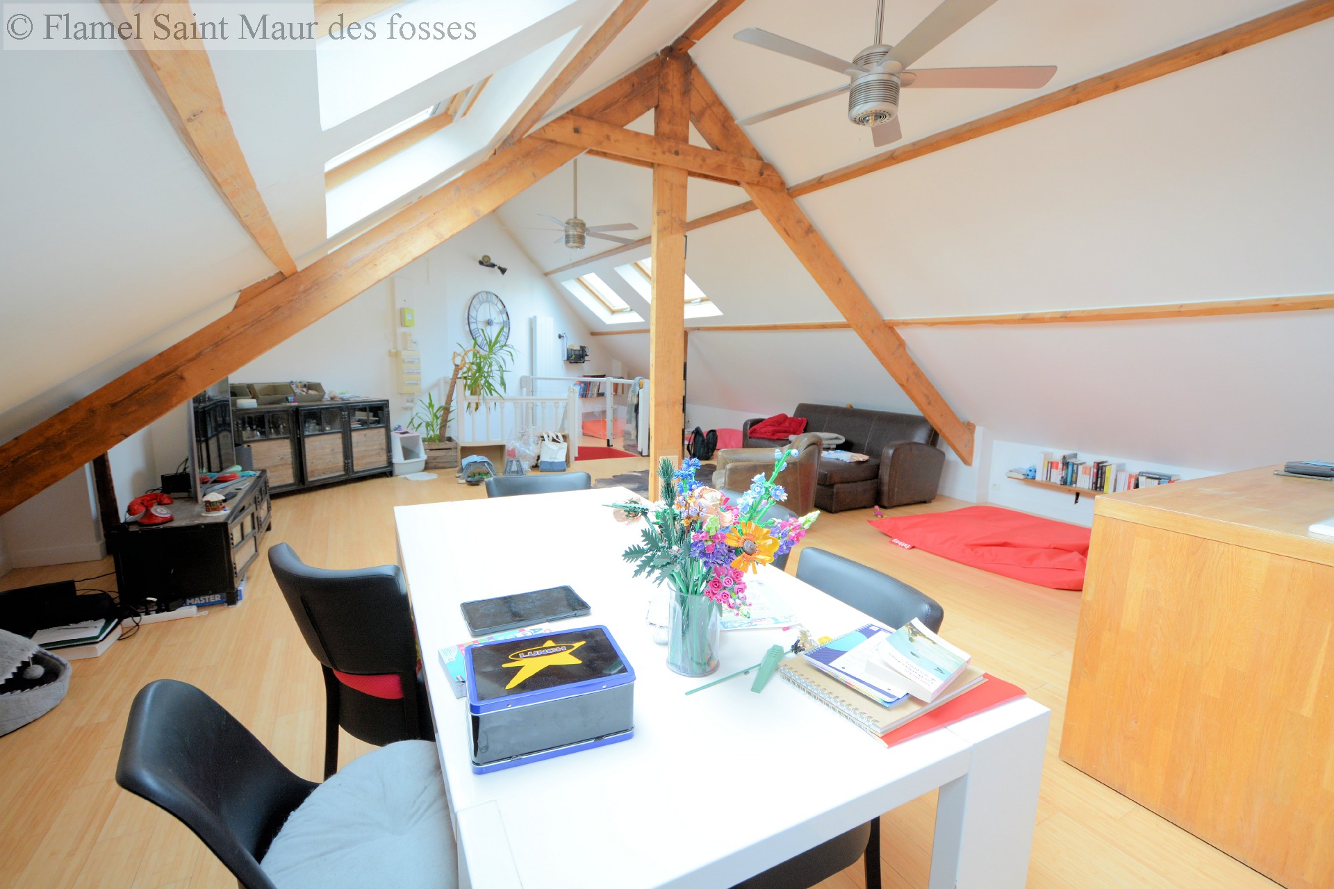 L'agence FLAMEL vous présente en exclusivité ce splendide appartement de 5 pièces de 70m2 loi Carrez et 127m2 au sol. Situé au 3ème et dernier étage, seul à l'étage, il se compose ainsi : l'escalier privatif servant d'entrée, mène à la vaste salle de séjour et sa cuisine ouverte. La luminosité est omniprésente dans l'appartement. Une porte donne sur le seul couloir desservant les pièces de nuit, telles que 2 chambres avec rangements intégrés, une salle d'eau, un WC séparé et la suite parentale avec coin dressing et salle de bains.