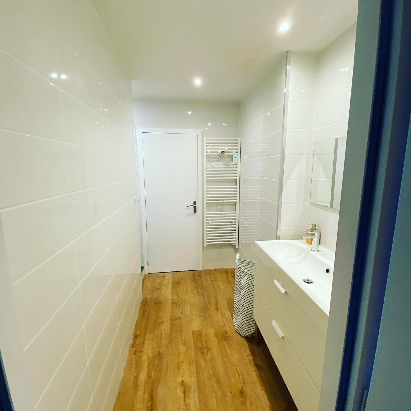 Le 'plus' pratique : Une loggia fermée attenante à la salle d'eau, dédiée au coin buanderie (lave-linge/sèche-linge).