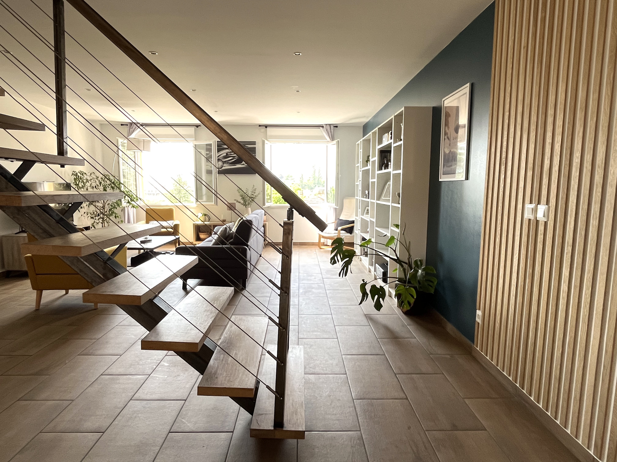 PIERREFEU Immobilier vous propose dans le Beaujolais - Pierres Dorées, en centre Bourg du Bois D'oingt, ce magnifique Duplex de 2017 d'une surface habitable d'environ 180m2. Le bien, de type 6, est modulable (chambres/bureaux), traversant Est/Ouest, et mitoyen. Il offre de généreux volumes répartis sur 2 niveaux comme suit : Rez-de-chaussée : entrée avec nbrx rangements donnant sur une grande pièce à vivre de 57m2, cuisine ouverte et accès à un bel espace extérieur de plain-pied. Une chambre, une buanderie / chaufferie, et un Wc séparé complètent ce niveau. A l'étage, vous disposerez de 4 grandes chambres/bureaux (min 14,40m2) dont une suite parentale d'environ 25m2 avec sde attenante, une salle de bains et un Wc séparé. 2 places de stationnement extérieur. Bien soumis au statut de la copropriété (géré en ASL). Nbr total de lots : 8. Faibles charges. Quote part annuelle : 115 euros /trimestre. Aucun procédure en cours. Chauffage : Pompe à chaleur (sol/radiateurs) avec option rafraichissement possible. Panneaux photovoltaïques en autoconsommation (abonnement à prévoir). DPE : A. Assainissement : Tout à l'égout. Notre avis : La performance énergétique, les volumes, les matériaux de qualité, le calme, la proximité immédiate des commodités (écoles et commerces à Pied, ramassage scolaire, gares Legny et Lozanne, A89, etc.). Visites et renseignements : Muriel Chauplannaz - Agent commercial indépendant de la SARL Pierrefeu Immobilier - Immatriculée au R.S.A.C de Lyon sous le Numéro 843 741 570.