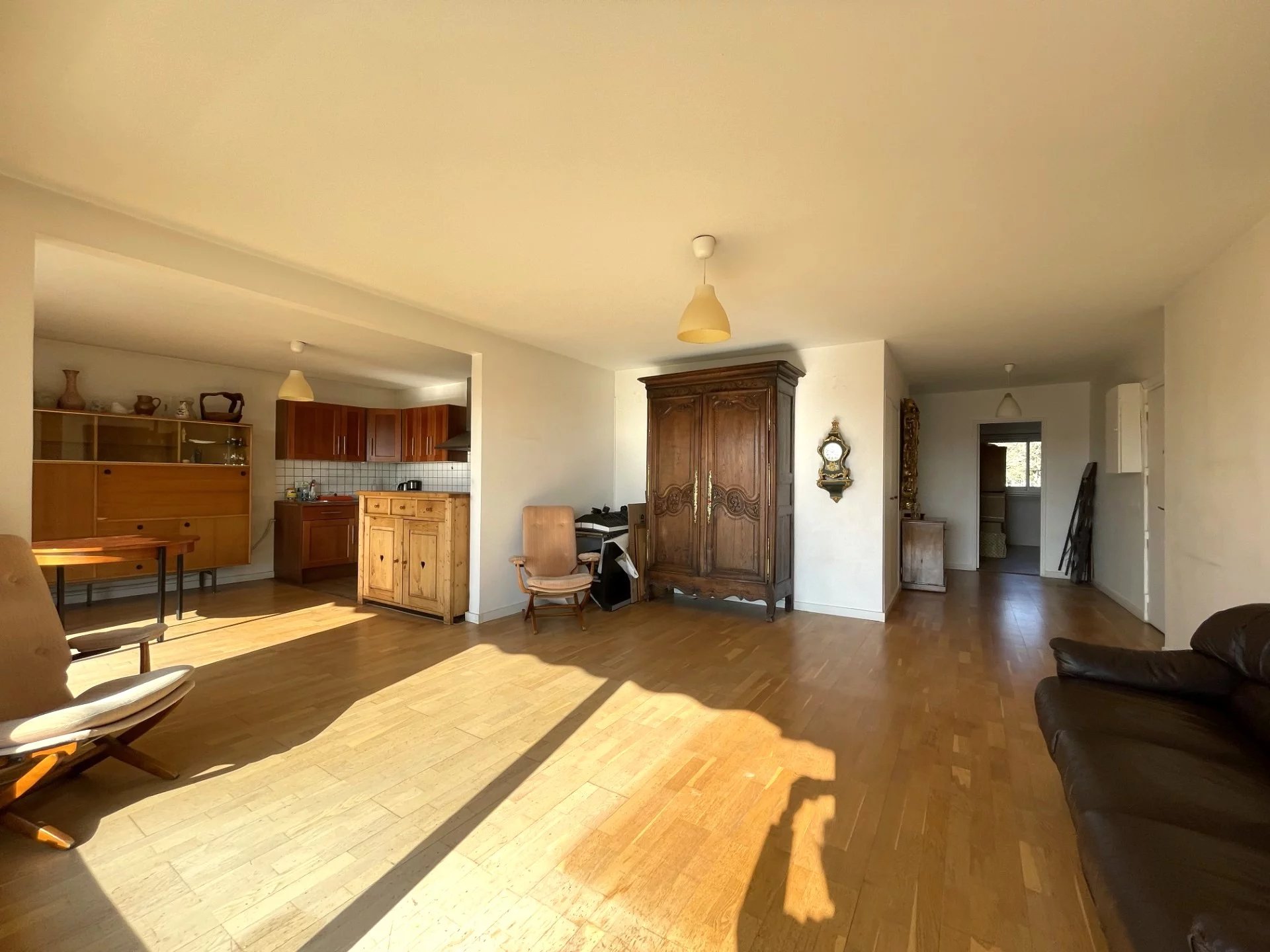 Traversant et baigné de lumière, ce bien en bon état général offre une distribution parfaitement optimisée. Il se compose d’une entrée avec rangements, d’un vaste double séjour avec cuisine ouverte d’environ 40 m², prolongé par un agréable balcon d'environ 10m2 exposé Sud au calme côté jardin, bénéficiant d’une vue dégagée et sans vis-à-vis.
