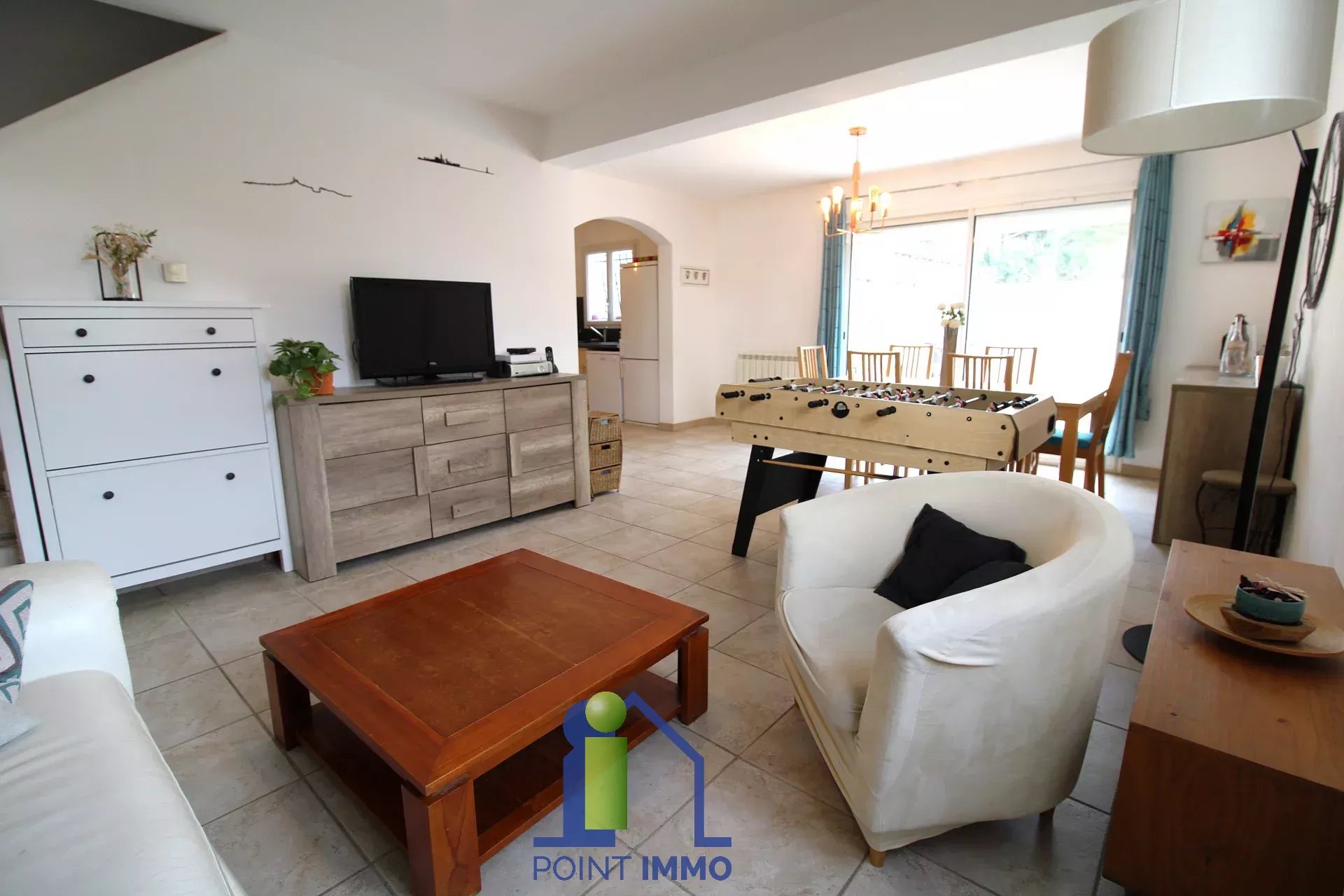 Au rez-de-chaussée, vous découvrirez un séjour lumineux avec double orientation de près de 30 m², une vaste cuisine séparée meublée, une buanderie avec douche et lave mains et des WC séparés. La buanderie est partagée avec le garage moto. Ces deux pièces peuvent également être assemblées pour accueillir une chambre et sa salle d'eau au rez-de-chaussée pour une surface de 16 m².