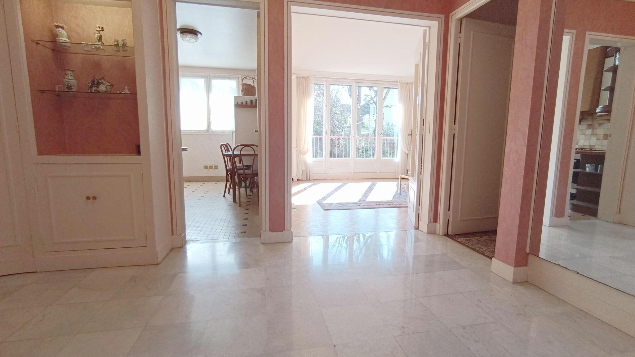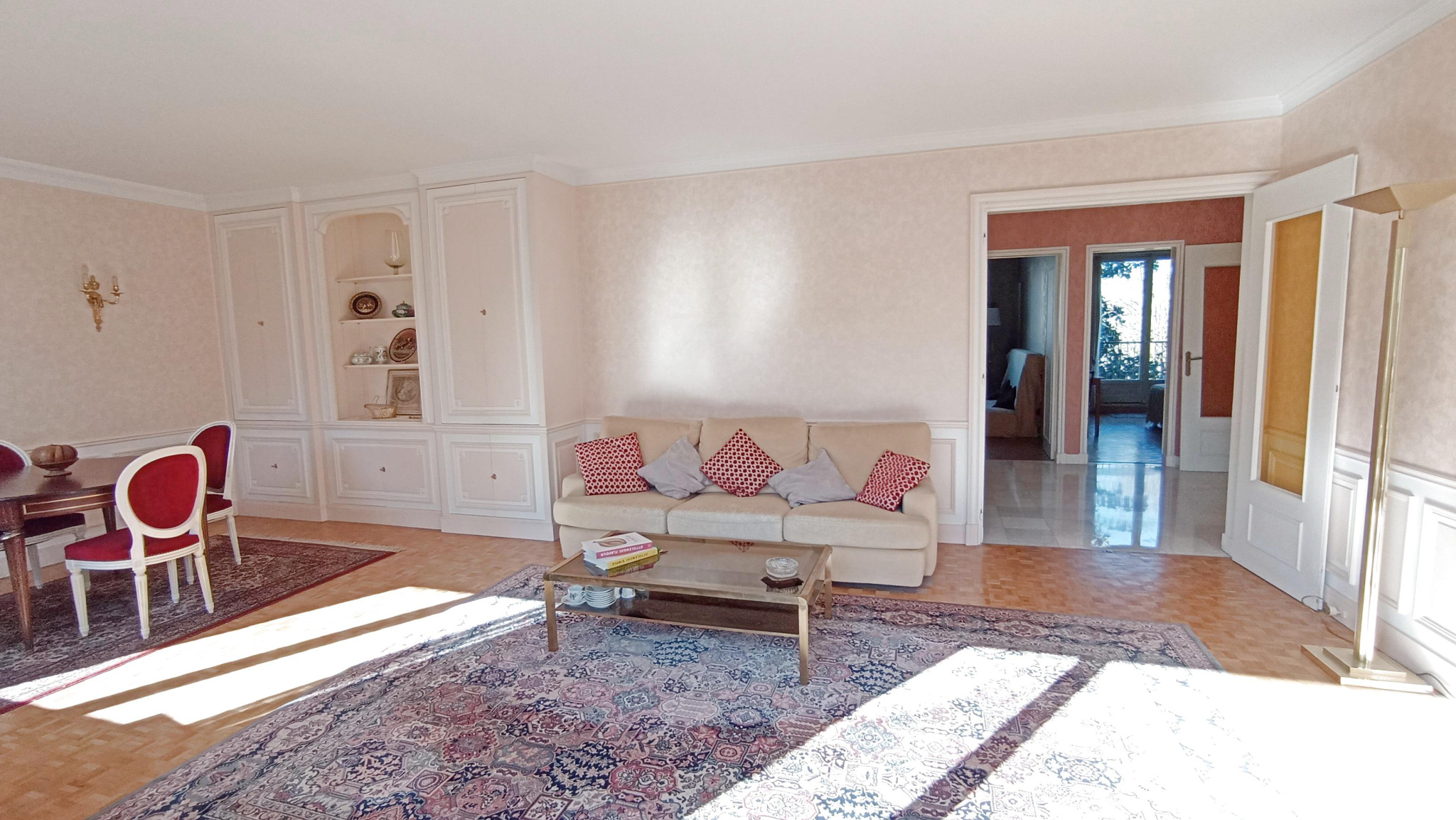 A proximité de la gare et des commerces. Dans une petite résidence calme et arborée, bel appartement traversant de 126 m2 comprenant un grand séjour de 31 m2 orienté sud pouvant être réuni avec la cuisine et son arrière cuisne/ buanderie, trois belles chambres, dégagement, une salle de bains, une salle d'eau avec toilettes, des toilettes séparées. Une chambre de service attenante de 12 m2 avec point d'eau et toilettes est également comprise dans la surface. Une grande cave et un box complètent le bien.