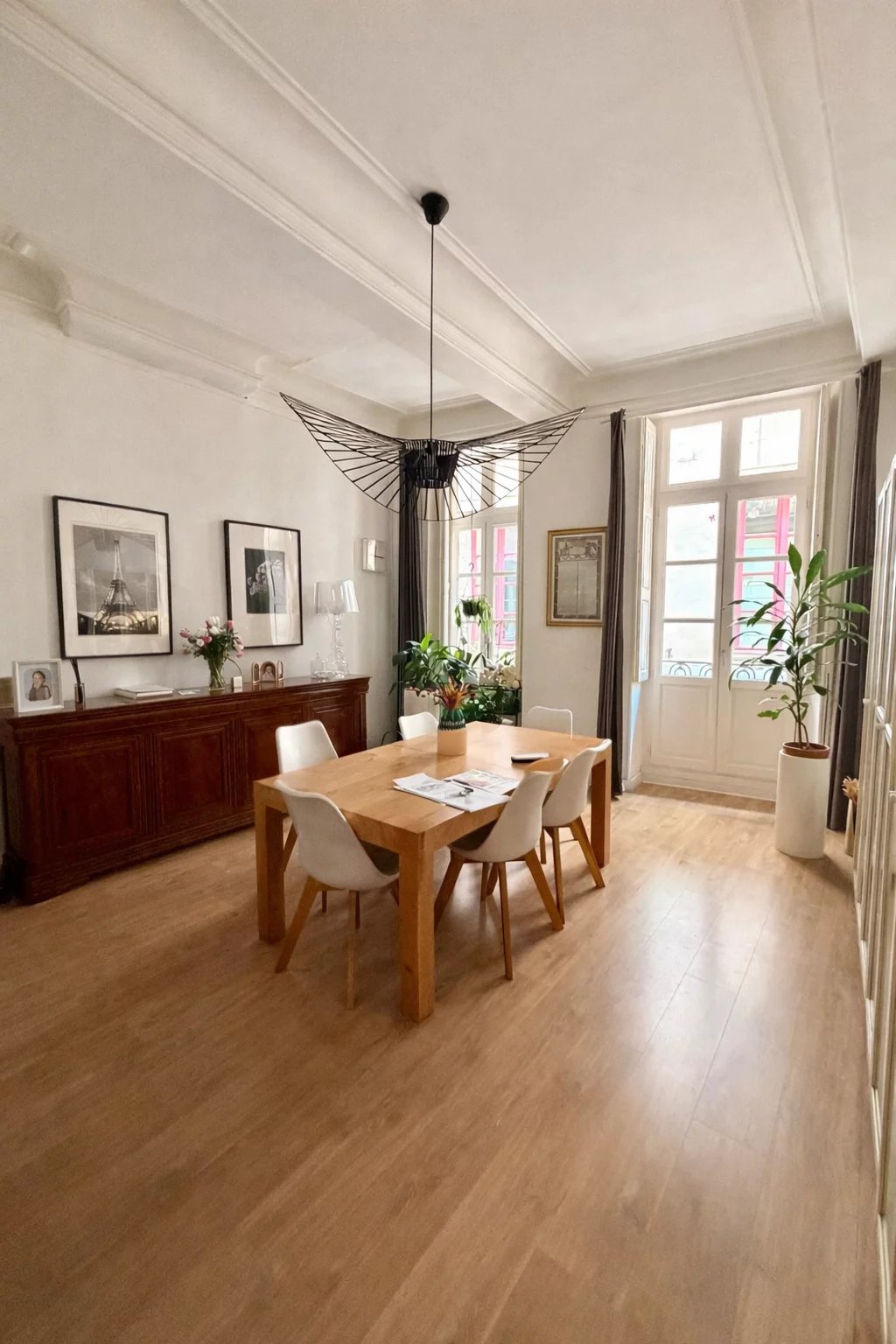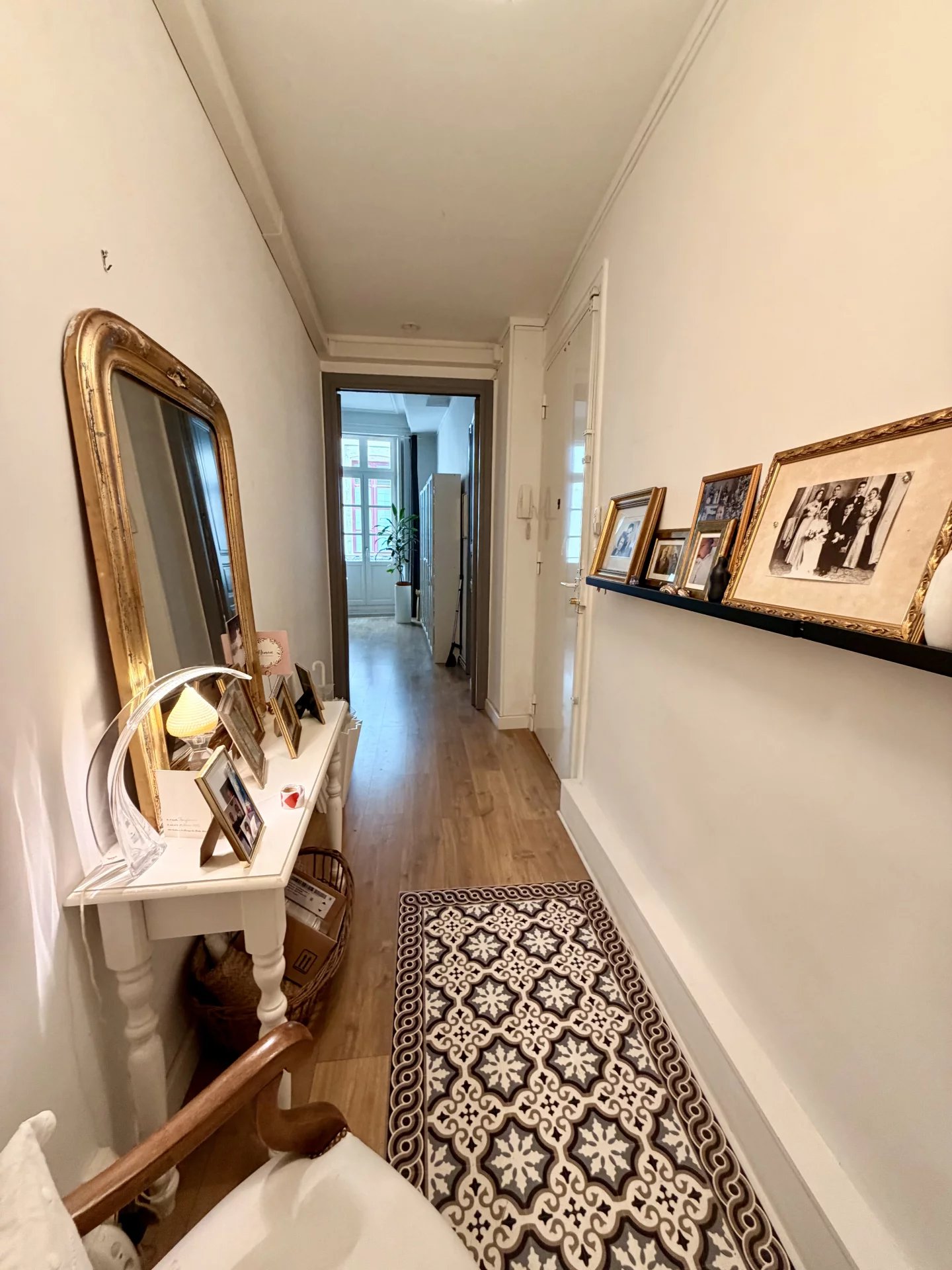 Dès l’entrée, les volumes généreux et la belle hauteur sous plafond créent immédiatement une atmosphère élégante et chaleureuse. L’appartement s’organise harmonieusement autour d’un agréable patio intérieur, véritable havre de paix en plein cœur de ville.