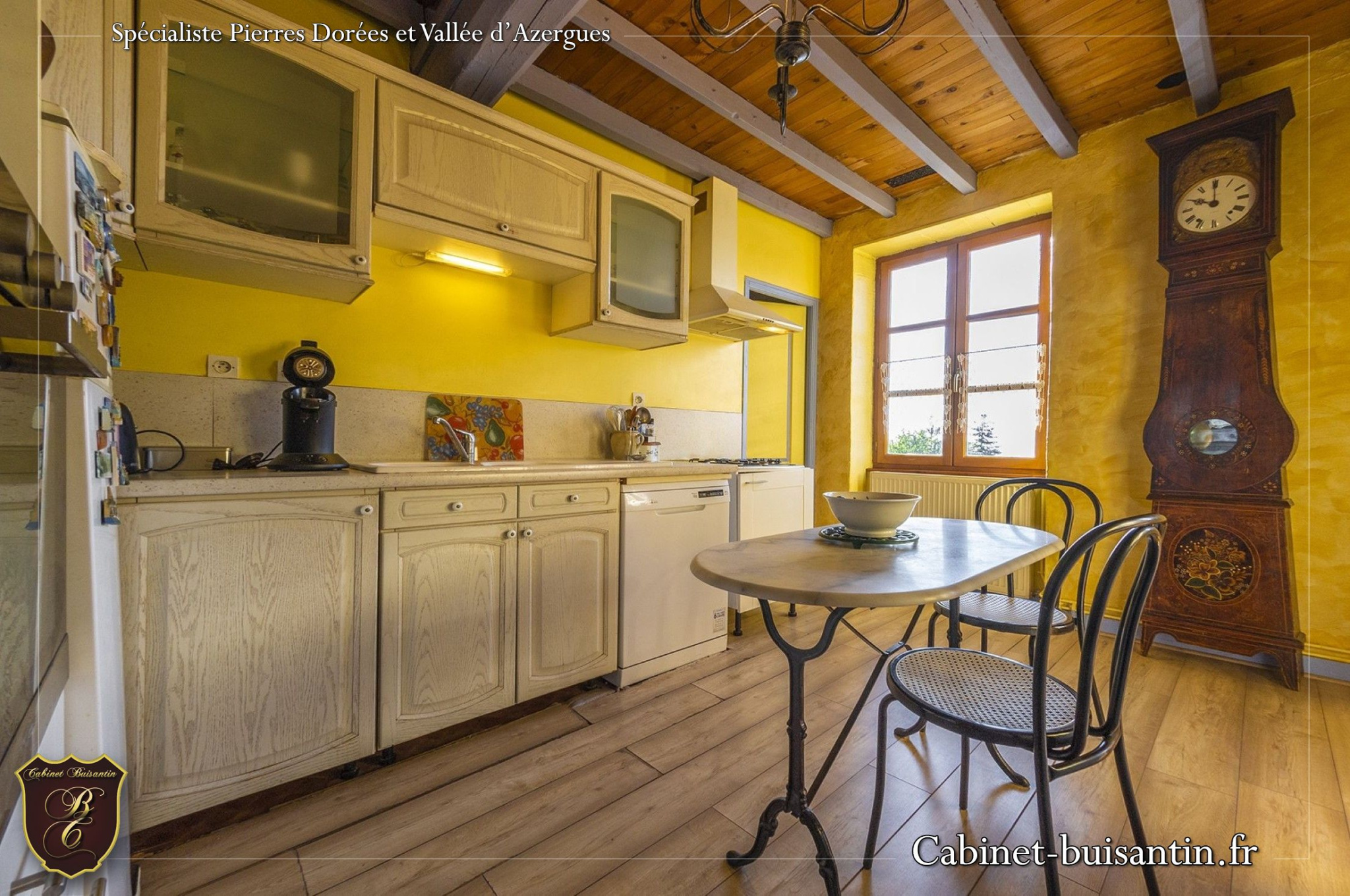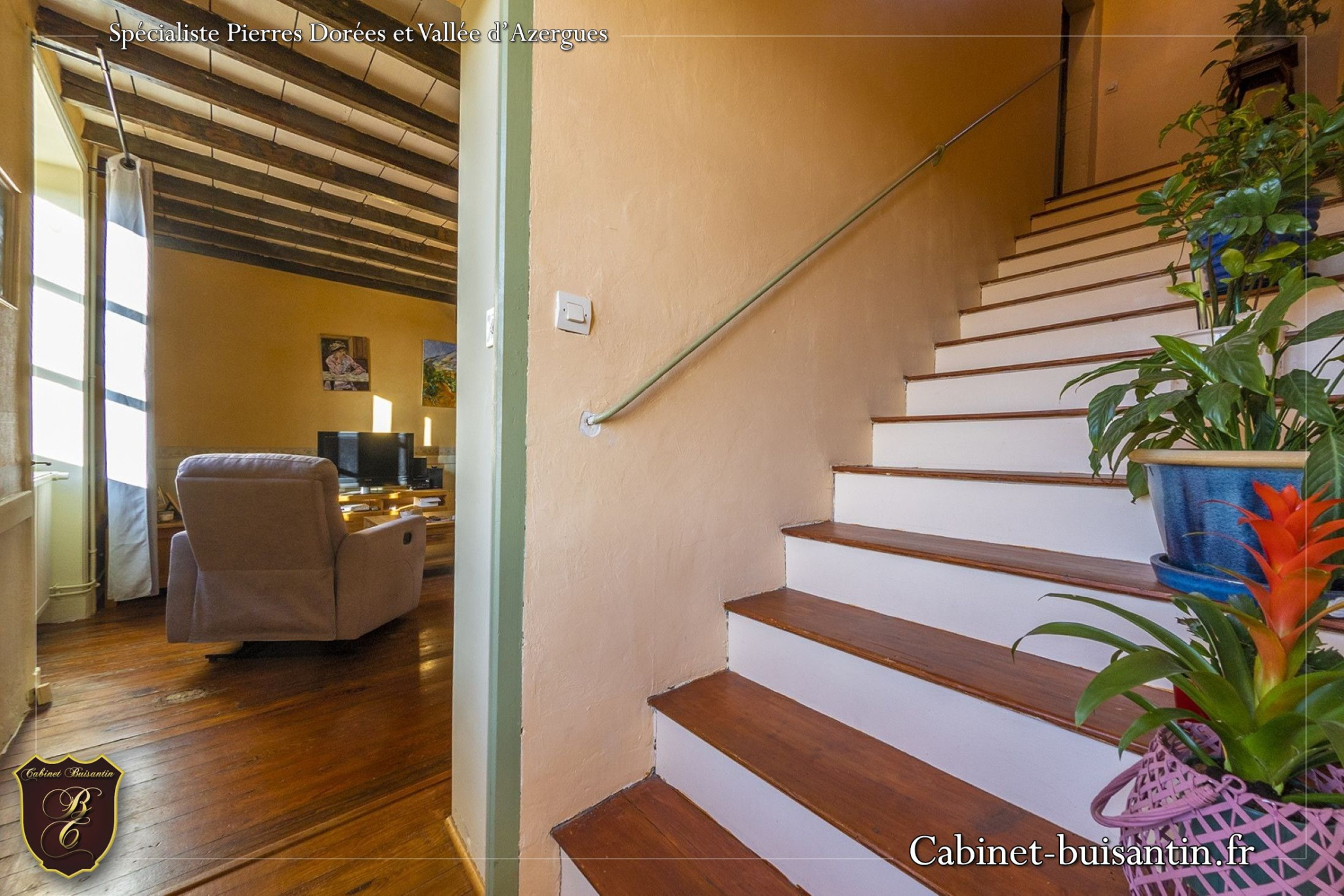 OINGT - Idéalement située au coeur du village classé « plus beaux villages de France », proche école. Mieux qu'un appartement, maison de village en pierres dorées d'environ 120 m2 habitables. Elevée sur garage d'environ 26 m2 et pièce aménageable (env. 25 m2) pouvant servir d'atelier d'artiste (ou 4ème chambre...). Elle comprend au 1er étage : Cuisine équipée, séjour avec cheminée, salle d'eau avec wc. Au dernier étage: 3 chambres dont 1 avec salle d'eau privative. Lumineuse et bien entretenue, cette maison bénéficie du cachet de l'ancien (escalier en pierres, parquets...)