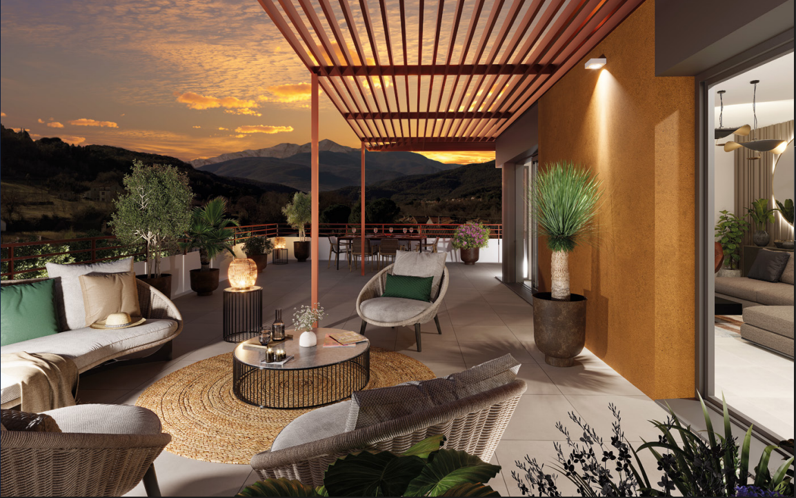 Cette résidence propose des prestations de qualité : espaces de détente, terrain de pétanque, amphithéâtre ombragé et commerces en rez-de-chaussée. Un véritable esprit de quartier à deux pas du centre de Céret !