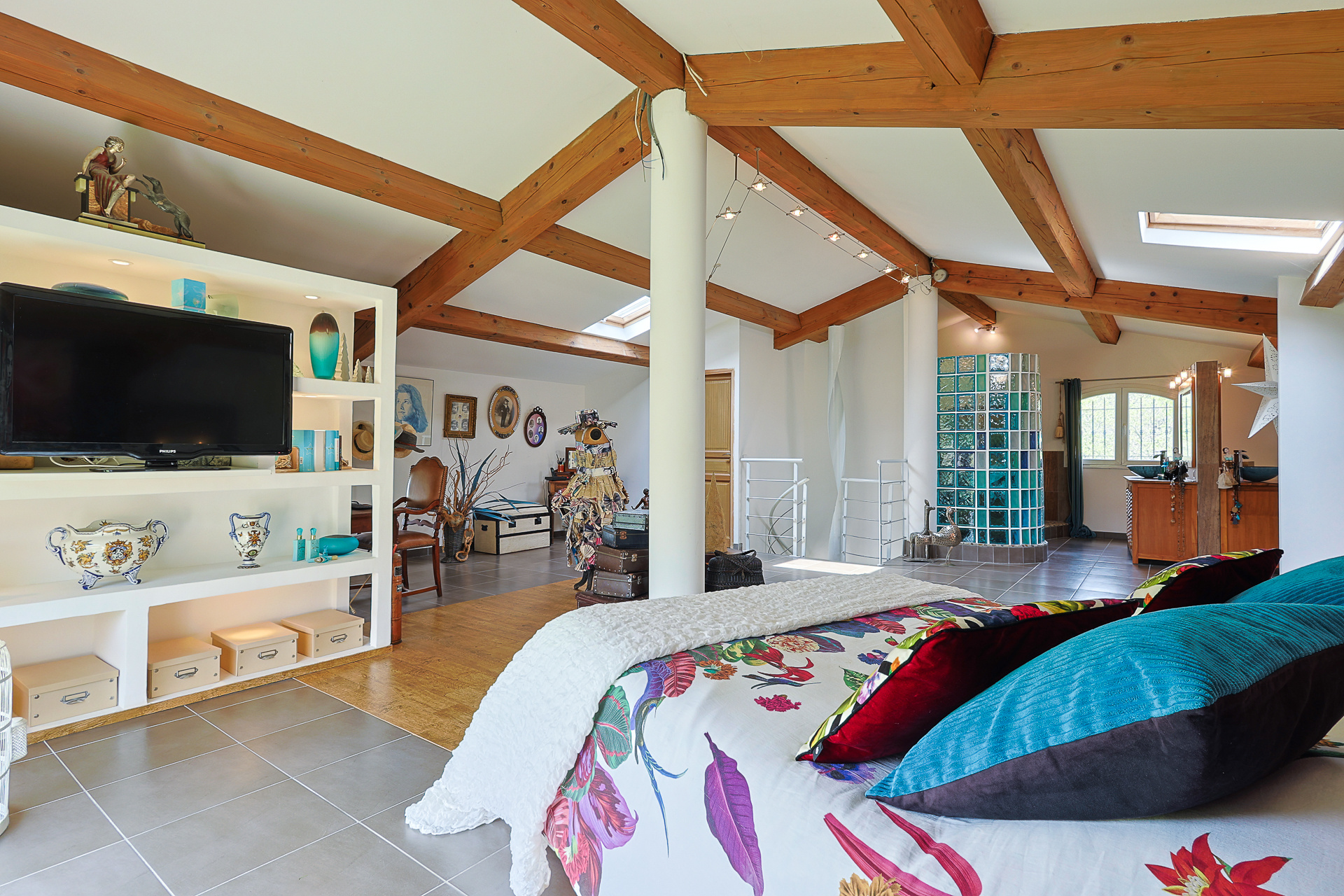 A l'étage : une somptueuse suite parentale d'environ 63m2 + sdb/wc, un dressing, une terrasse.