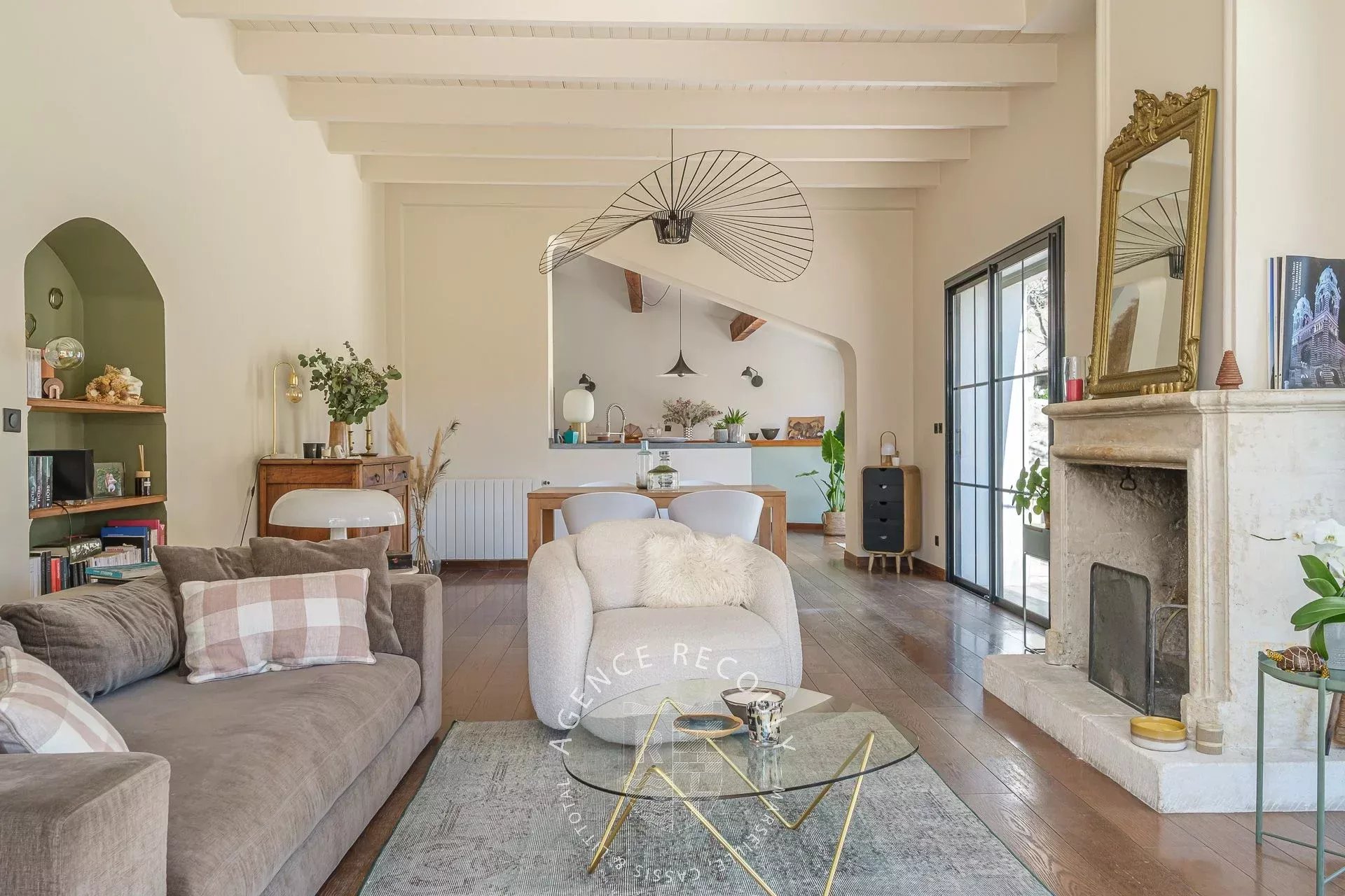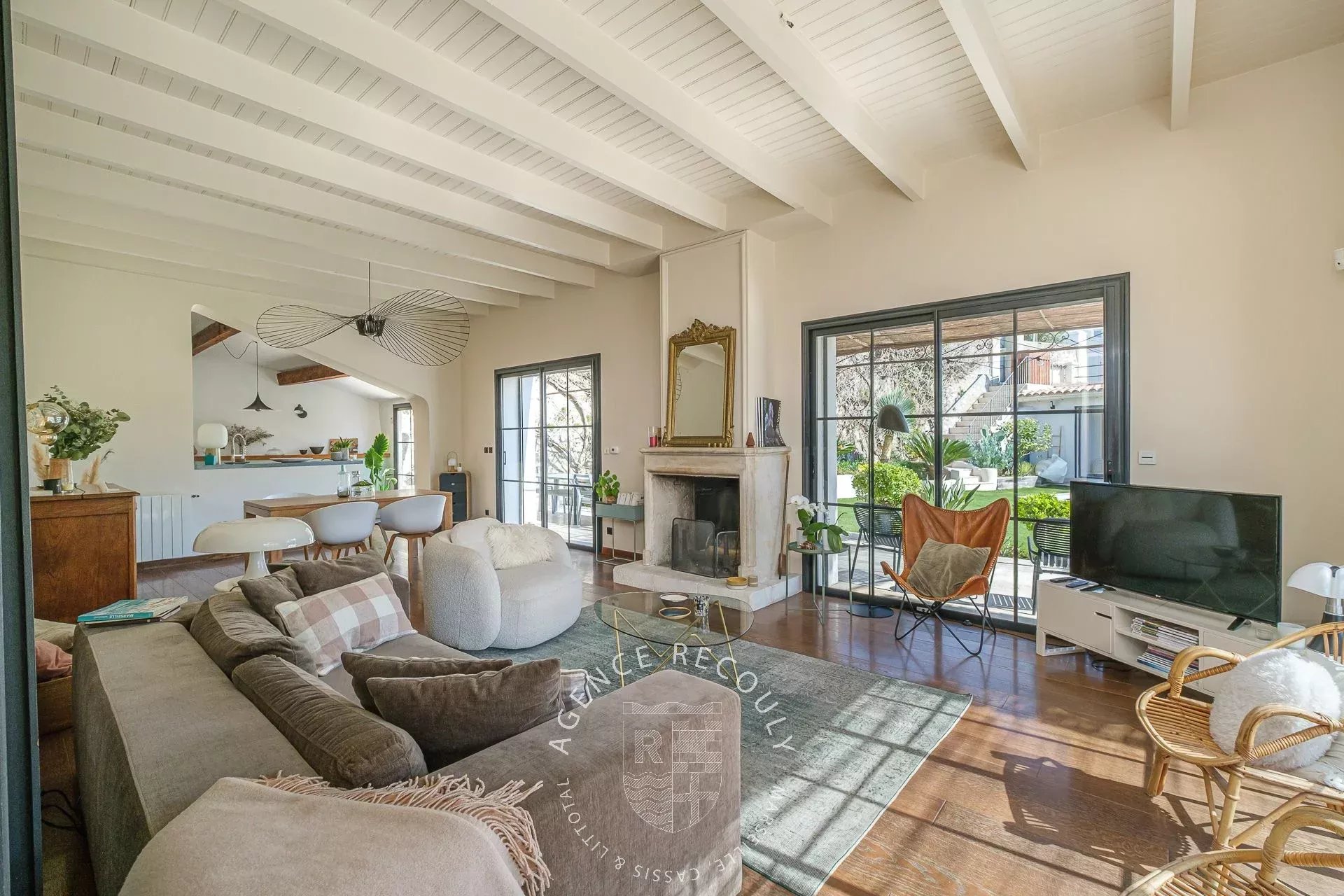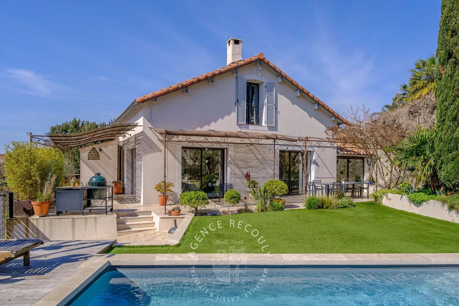 Dès l'entrée, vous découvrirez un magnifique séjour avec cheminée baigné de lumière grâce à son exposition plein sud et bénéficiant d'une belle hauteur sous plafonds. La cuisine semi-ouverte conviviale prolongée par une buanderie s'ouvre sur une agréable terrasse ombragée par une tonnelle, et sur un joli jardin paysager avec sa piscine.