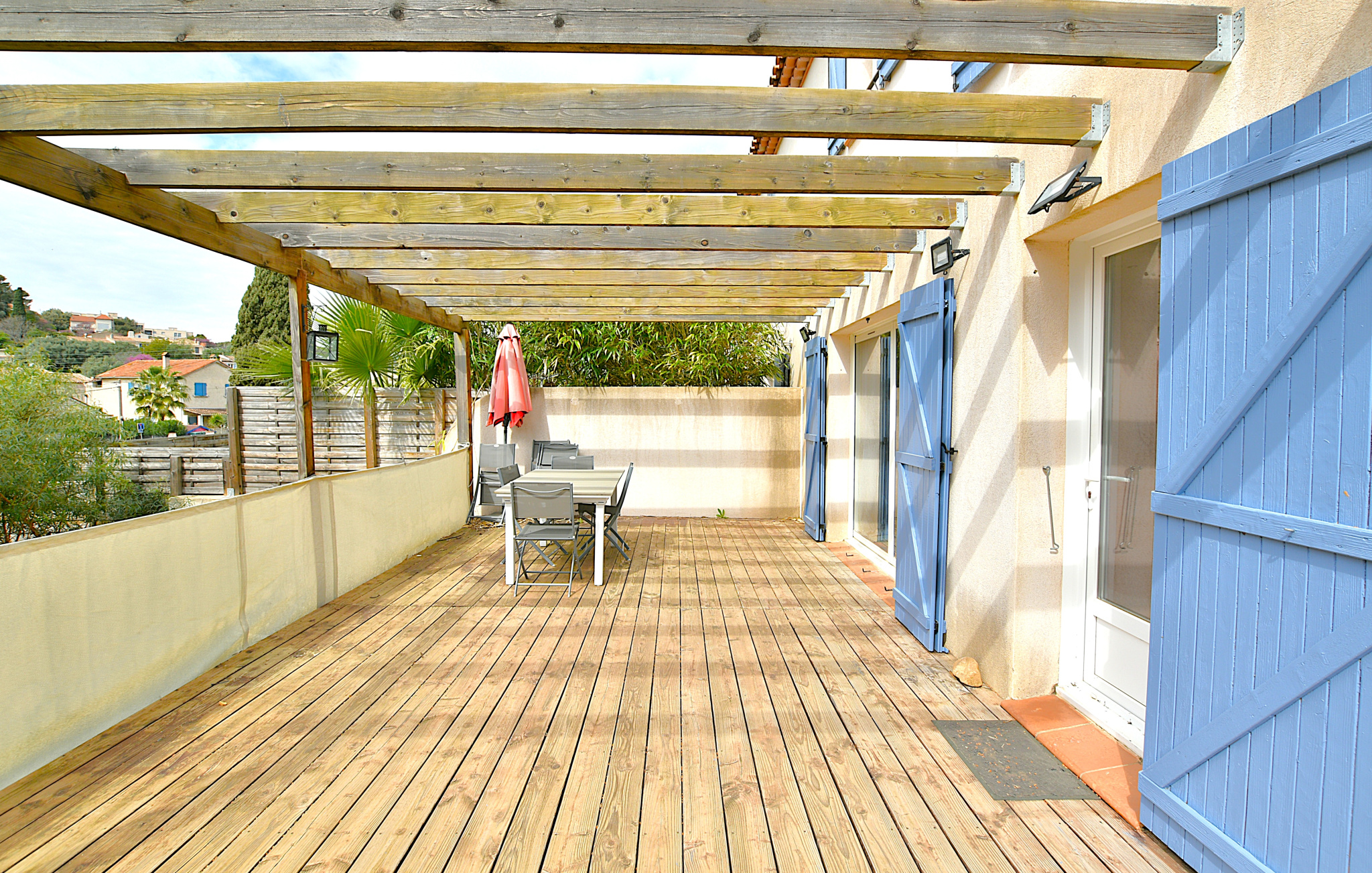Sur une parcelle en restanque de 301 m2, trés belle villa type 5 de 137 m2 habitables, mitoyenne d'un côté.