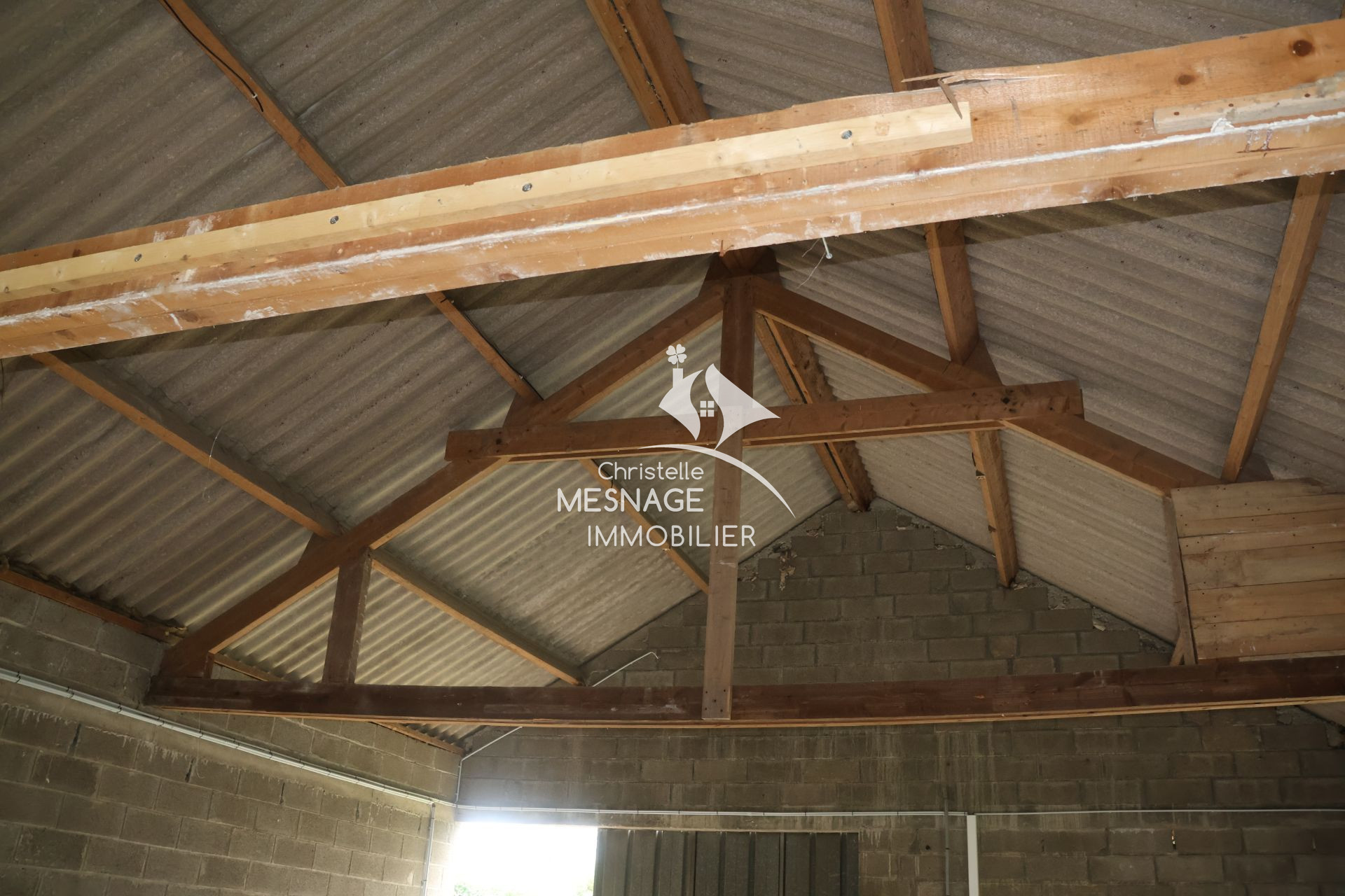 À vendre chez Christelle Mesnage, aux portes de Dinan, entrepôt ou atelier sur 827m² de terrain, à usage artisanal, sur dalle béton. Toiture en fibrociment, portes métalliques. Portail en PVC blanc à l'entrée du terrain. Compteur EDF existant à raccorder. Idéal pour un artisan ou collectionneur de voitures.