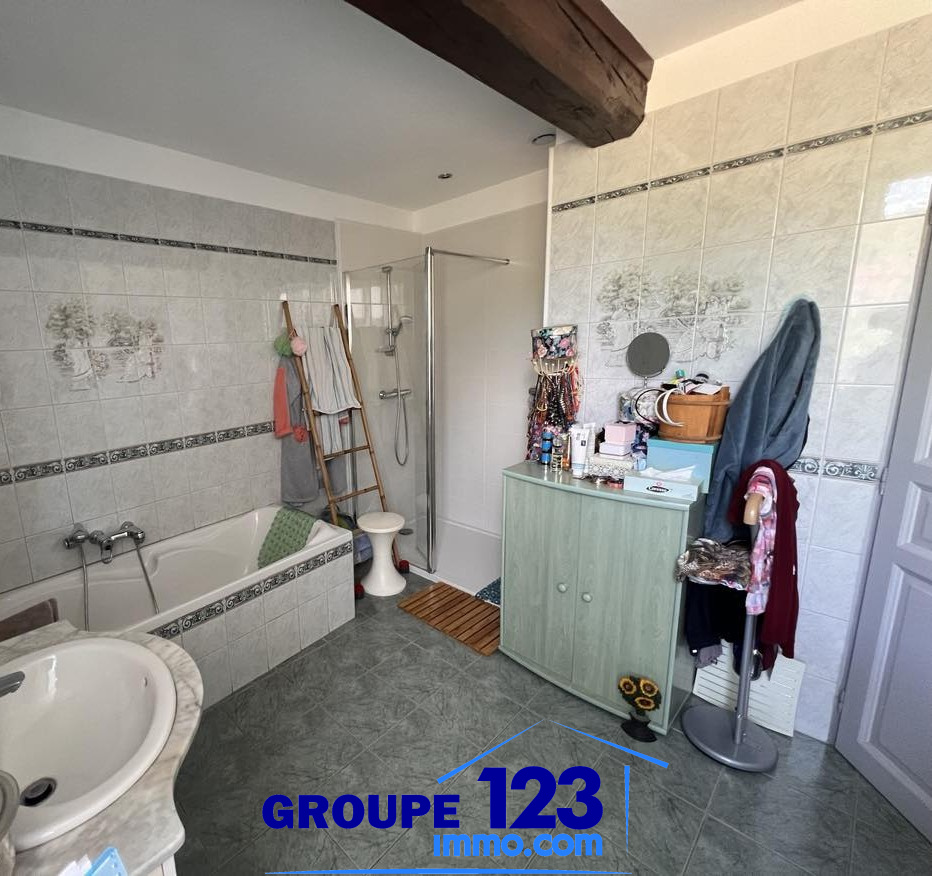 Au rez-de-chaussée, vous découvrirez une agréable pièce de vie de 42 m2 avec cheminée insert, idéale pour les moments conviviaux, ainsi qu'une grande cuisine aménagée et équipée de 17 m2 avec cuisinière à bois. Un vaste couloir dessert également une belle chambre et une grande salle de bain avec douche à l'italienne et baignoire.