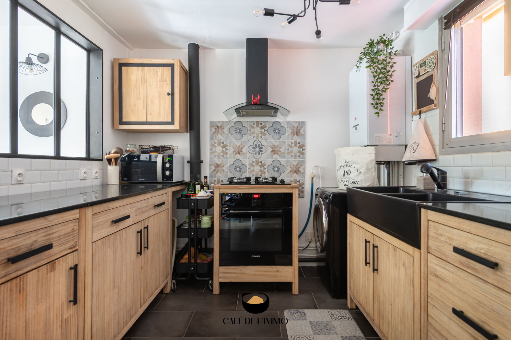 Sur ce même niveau, vous disposez d'une cuisine séparée par une verrière sur mesure, bien agencée et fonctionnelle et d'un bureau de plus de 7m2 pouvant égalemet servir de chambre.