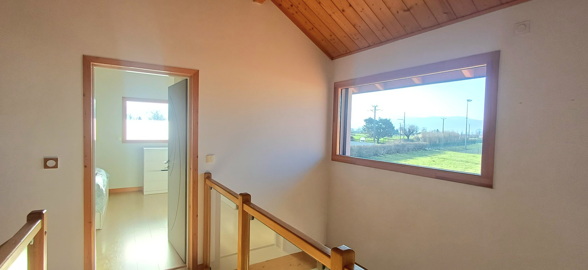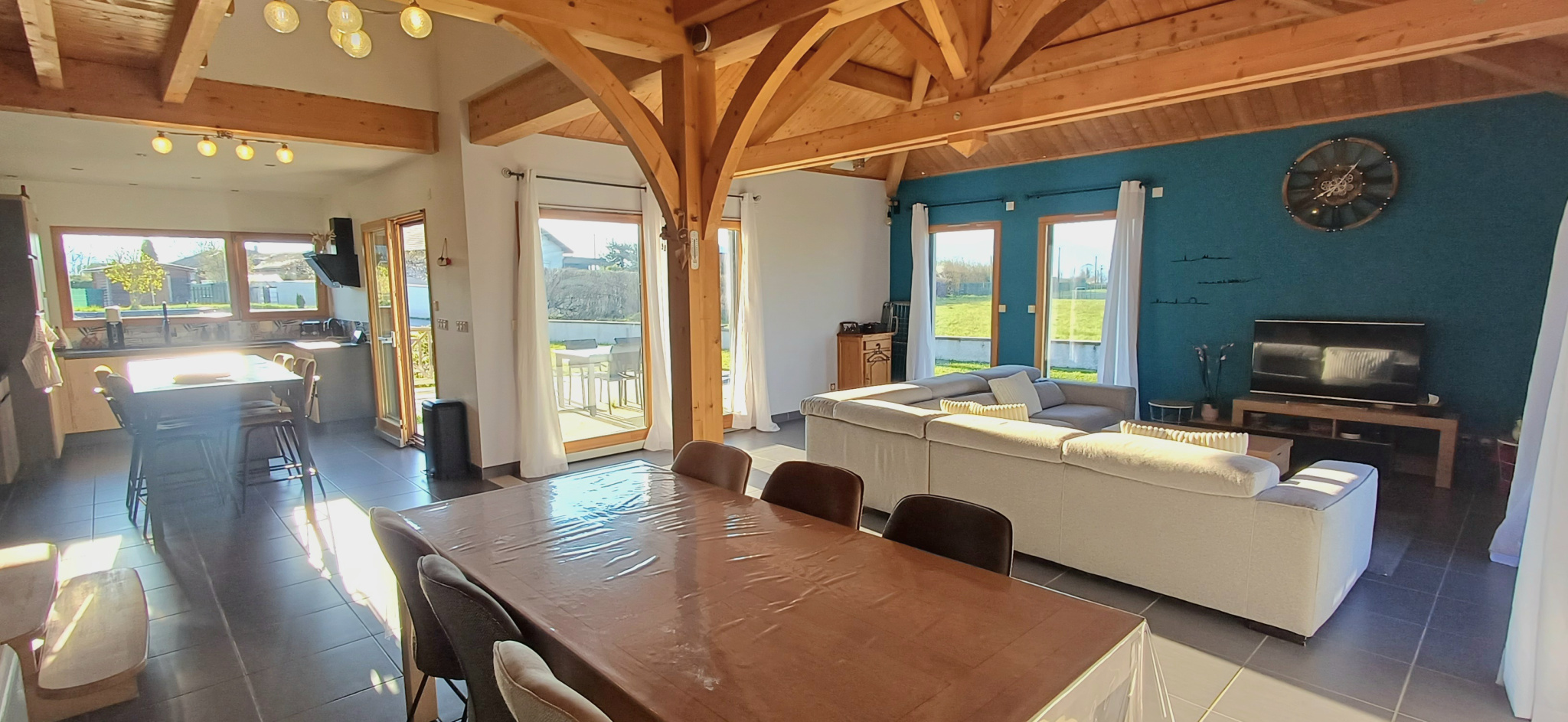 Coup de coeur assuré pour cette merveilleuse maison ossature bois construite en 2013, sur un terrain de plus de 1000 m2. Vous ne restiterez pas aux charmes qu'offre la construction bois en cathédrale, ni à ses nombreuses baies vitrées qui font baigner la maison dans un ensoleillement permanant tout au long de la journée.
