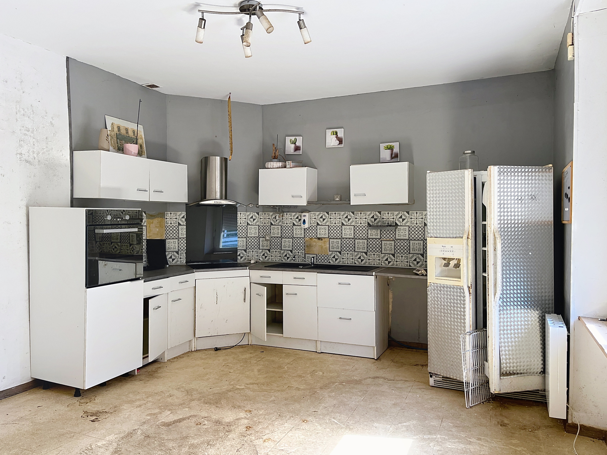 Dès l'entrée, le rez-de-chaussée propose un ancien espace commercial avec vitrine, offrant une belle visibilité et pouvant être transformé en pièce de vie lumineuse, complété par une arrière-cuisine ainsi qu'un espace de vie avec coin cuisine, laissant entrevoir de nombreuses possibilités de réagencement selon votre projet, qu'il soit à vocation résidentielle ou mixte.