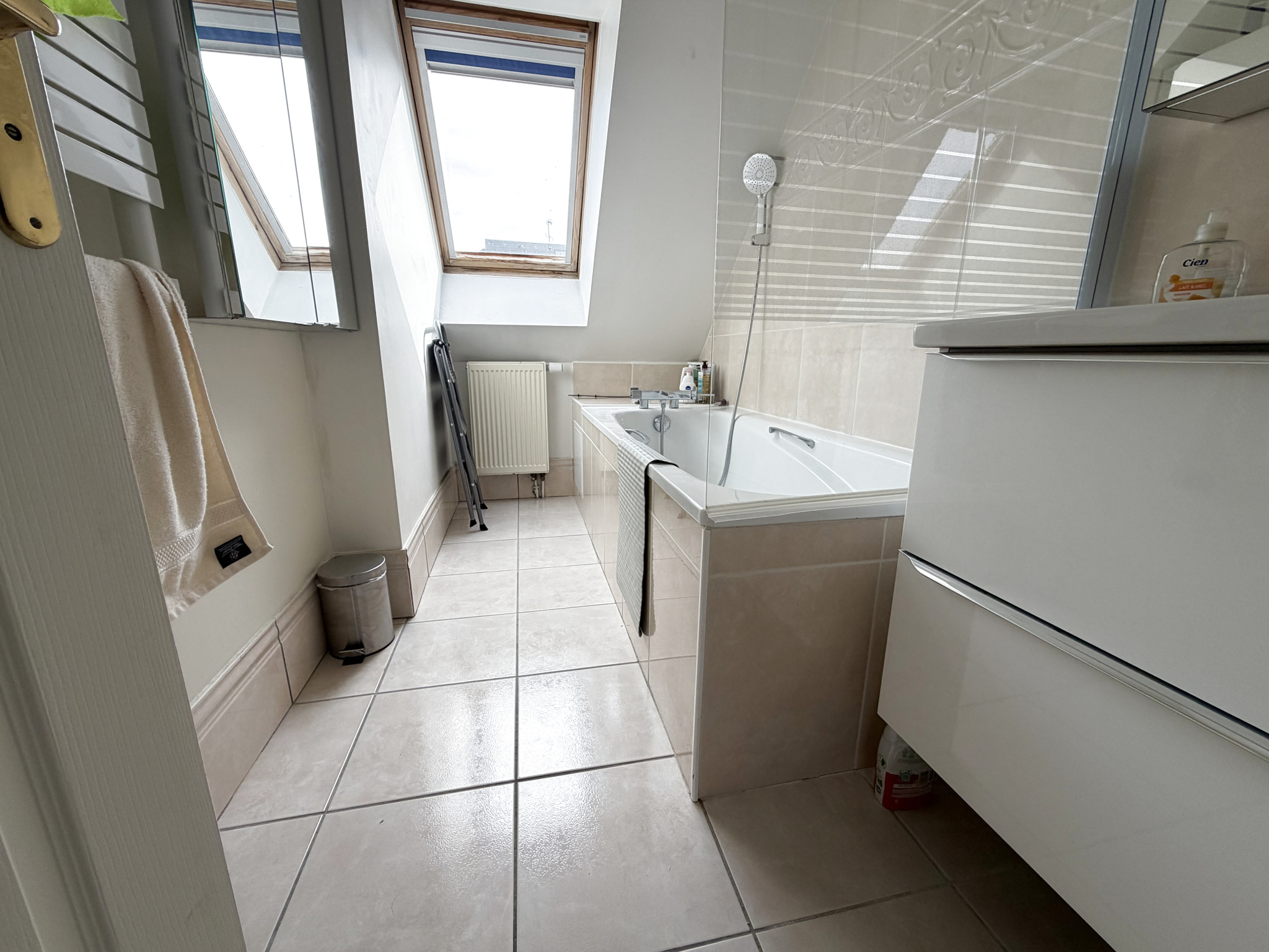 Au rez-de-chaussée, vous trouverez une enur. trée accueillante menant à un lumineux salon/séjour, ainsi qu'une cuisine aménagée et entièrement équipée. Un WC avec lave-mains complète ce niveau.