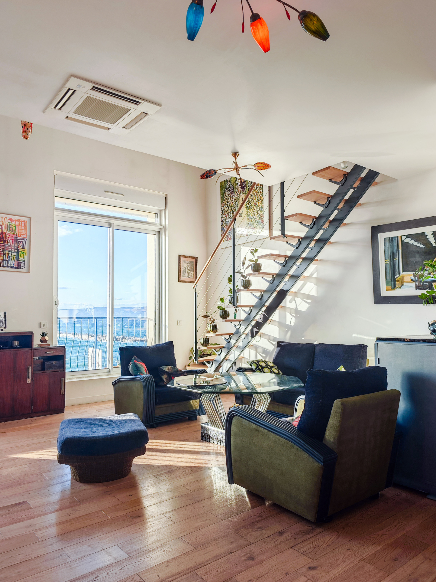 Sur la mythique Corniche Kennedy, à quelques pas de Malmousque, des commerces de quartier et des accès directs à la mer, ce duplex baigné de lumière offre un cadre de vie rare, entre élégance et liberté d'aménagement.