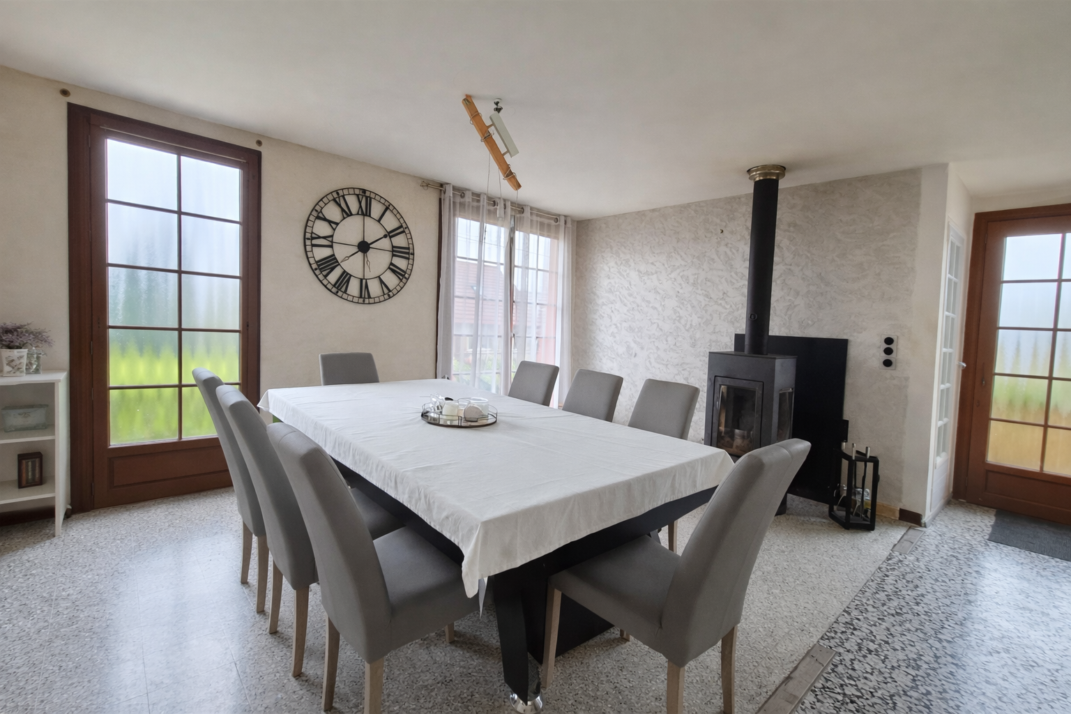 La maison dispose également d'un sous-sol complet comprenant une chambre avec sa salle d'eau ainsi qu'un grand garage, offrant de nombreuses possibilités d'aménagement et de rangement.