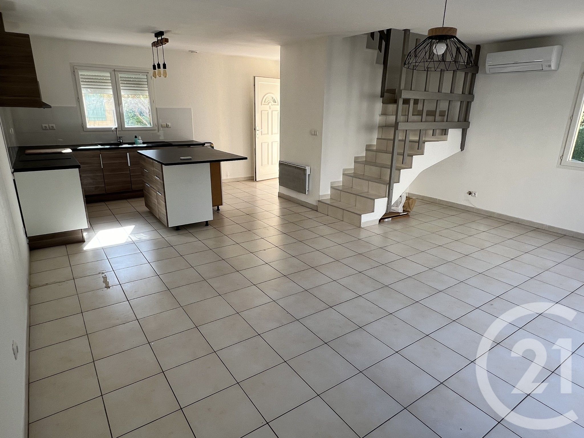La maison dispose de baies vitrées en double vitrage, d'une cuisine équipée et de la climatisation réversible.