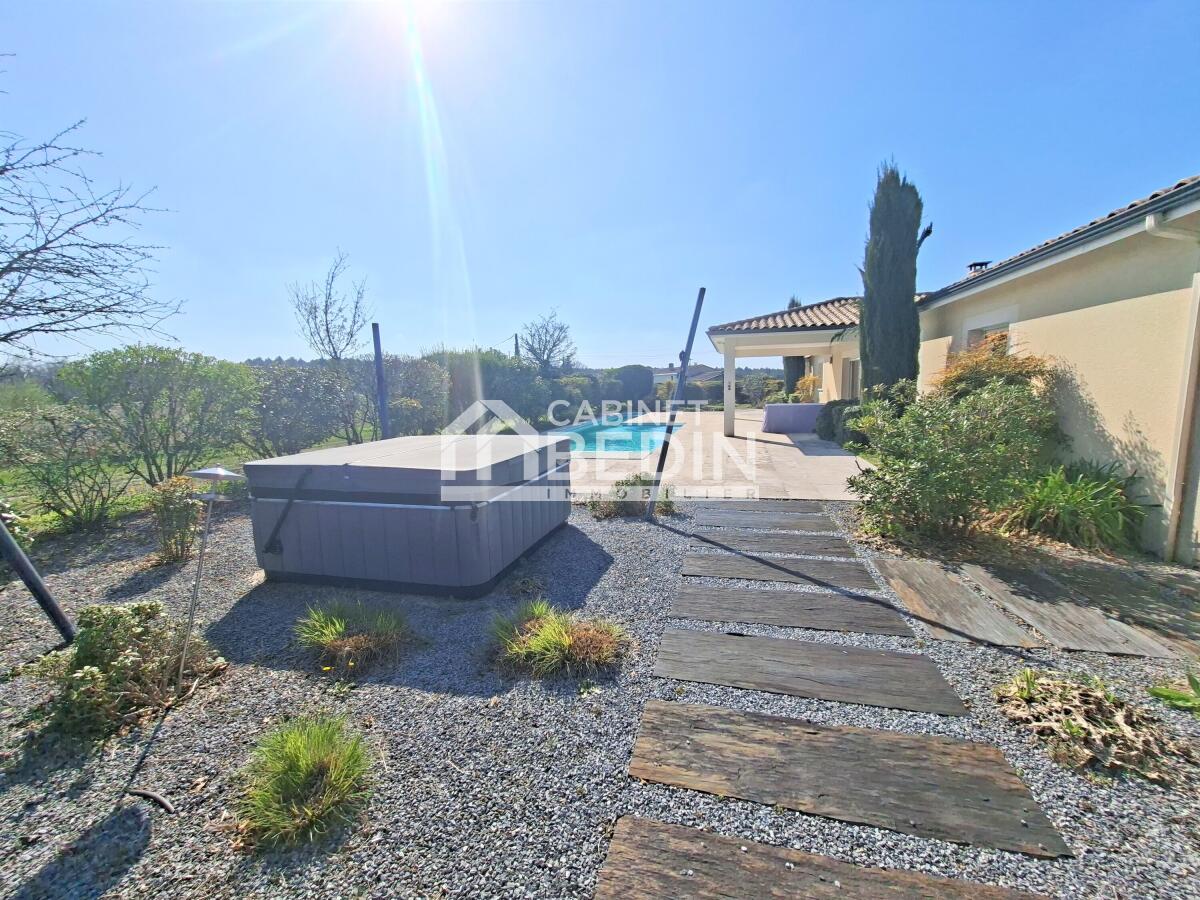Belle maison de plain-pied à la Brède. Maison idéalement située sur les hauteurs de la Brède sur un beau terrain de 1500 m² proche des écoles et des collèges.