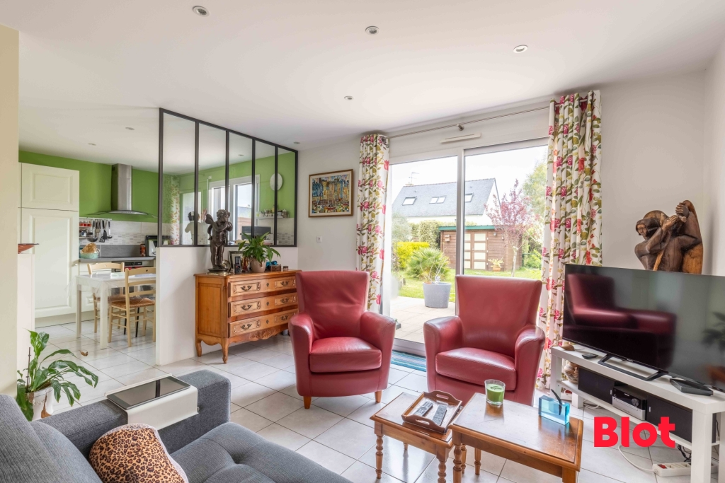 Le séjour donne accès à une agréable terrasse, prolongée par un jardin intime, arboré et parfaitement entretenu, avec cabanon de jardin, idéal pour vos moments de détente en extérieur.