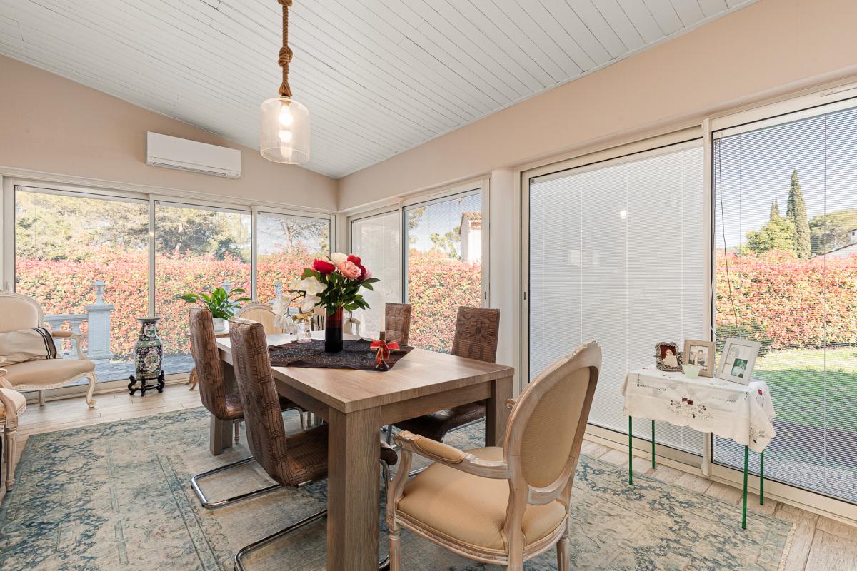 Située dans un quartier recherché de Mougins, à proximité des commodités tout en bénéficiant d'un environnement résidentiel privilégié, cette villa individuelle de 132 m² est implantée sur un superbe terrain plat de 1 850 m², au fond d'une impasse, garantissant calme et intimité.