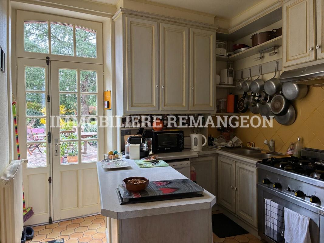 Au Coeur du village, à proximité des commerces et services, cette élégante maison de Maître fin XIX° alliant authenticité, cachet et beaux volumes . Composée d'une double entrée, séjour et salon avec cheminée, belle hauteur sous plafond. 3 chambres, bureau, salle d'eau. Cave sous partie. Grand grenier isolé. Dépendances en briques pleines de charme, divisé en atelier, bûcher, réserve. Sur un jardin bucolique de 912m² clos, joliment paysagé et arboré, pour profiter de la terrasse sans vis à vis. Ce bien vous est présenté à la vente par Bernadette Julien- Binard E.I. Immobilière REMANGEON.